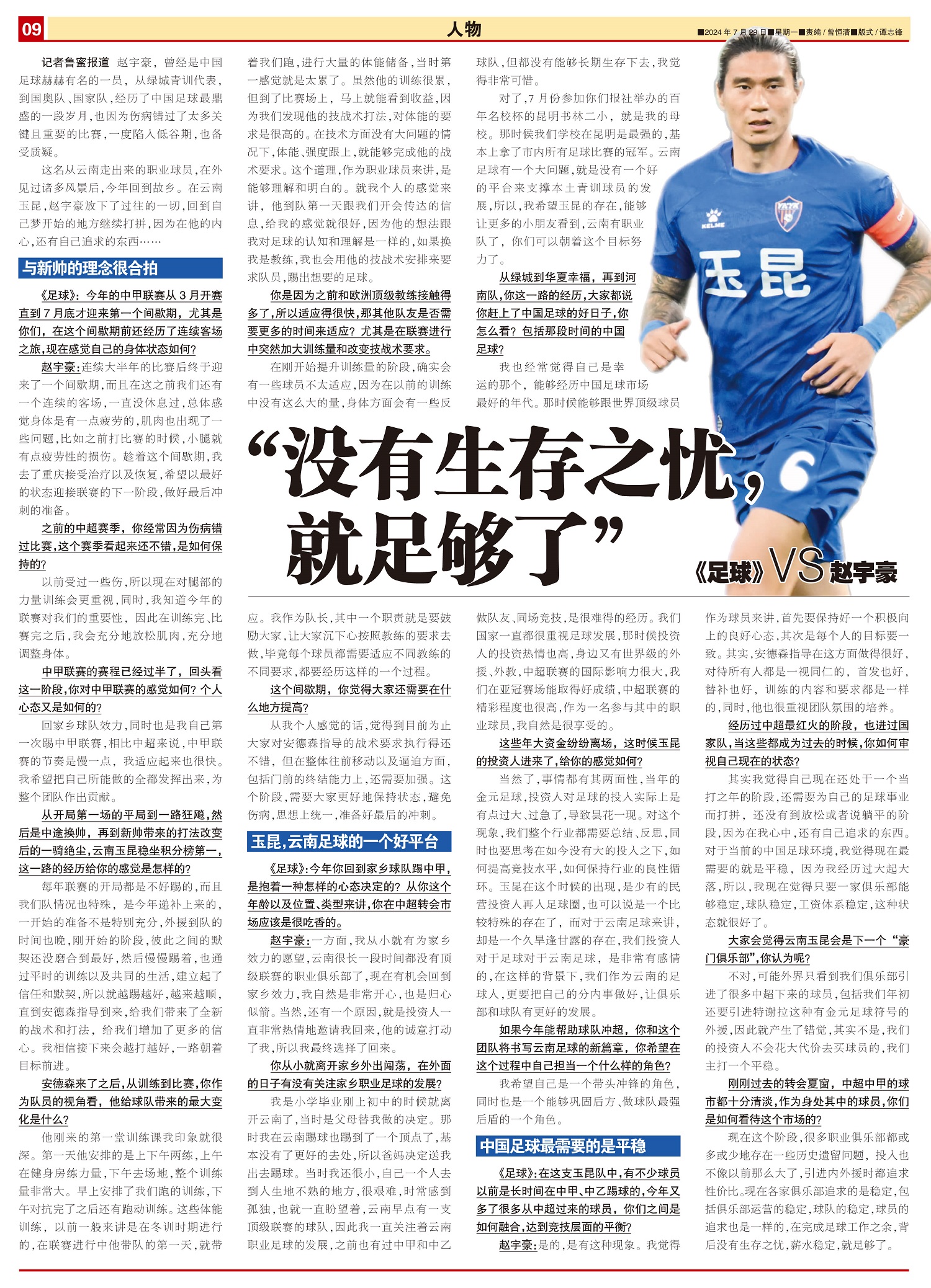 《足球》VS赵宇豪 “没有生存之忧, 就足够了”