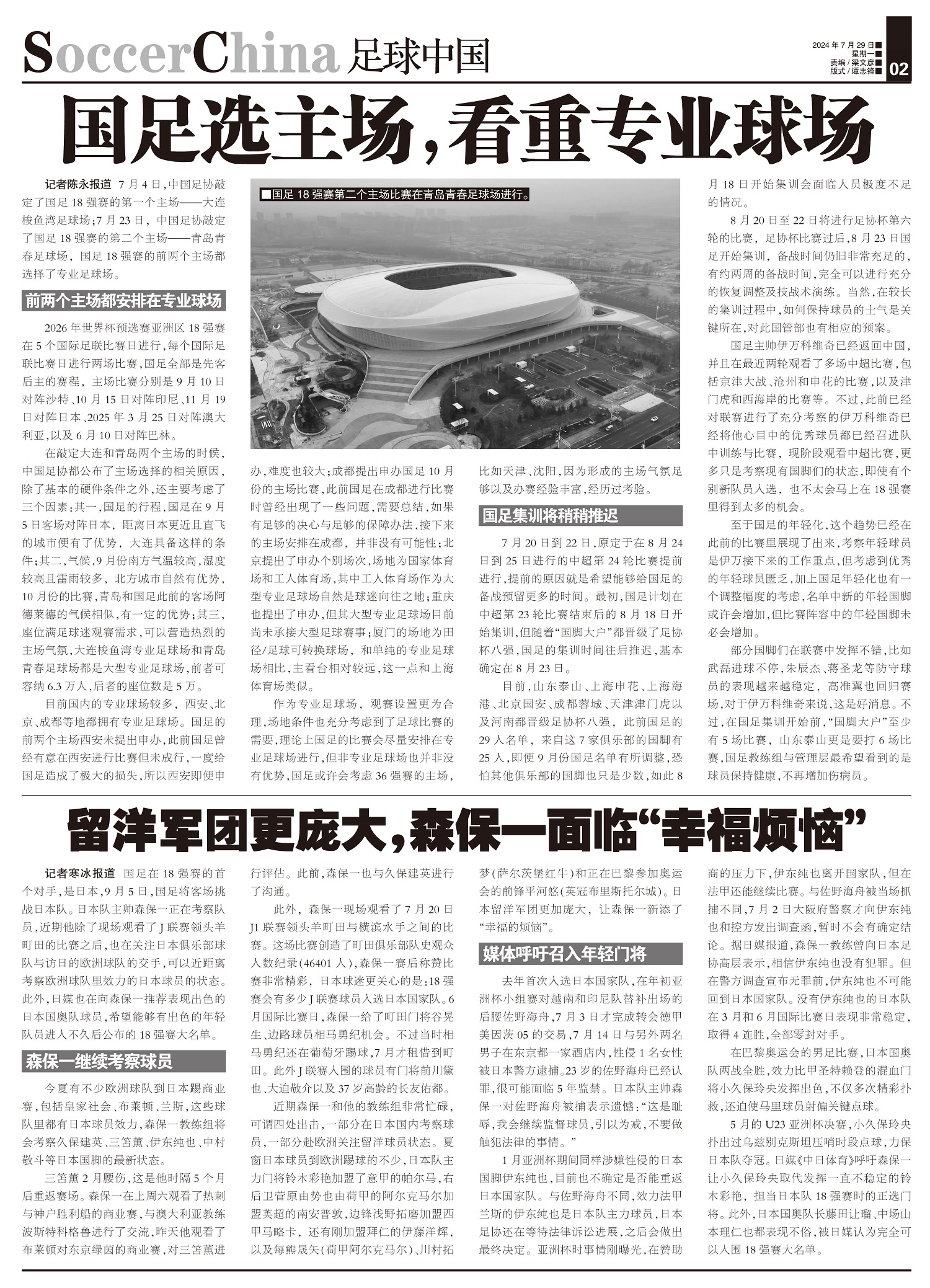 7月4日,中国足协敲定了国足18强赛的第一个主场——大连梭鱼湾足球场;7月23日,中国足协敲定了国足...