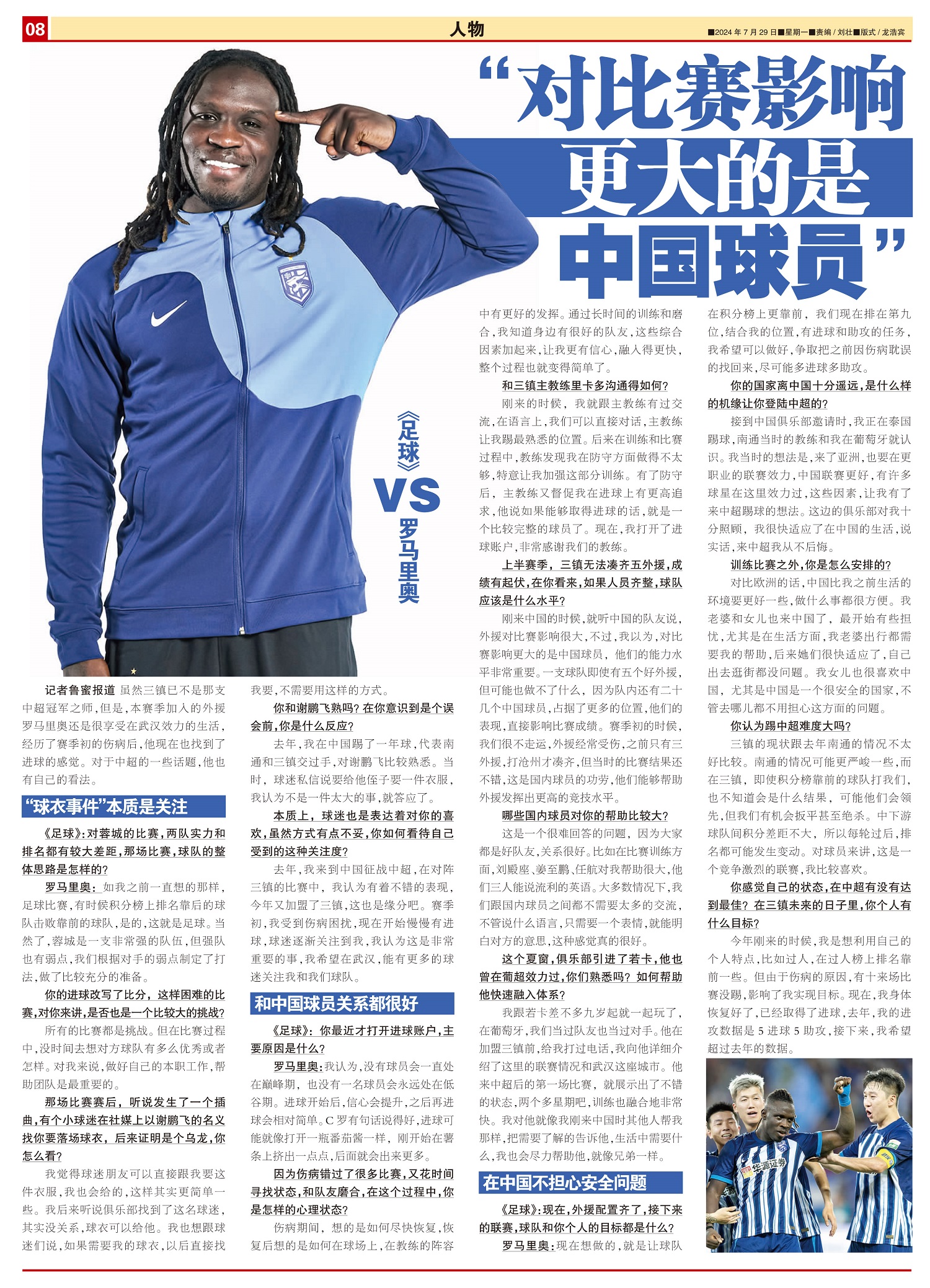 《足球》VS罗马里奥 “对比赛影响更大的是中国球员”