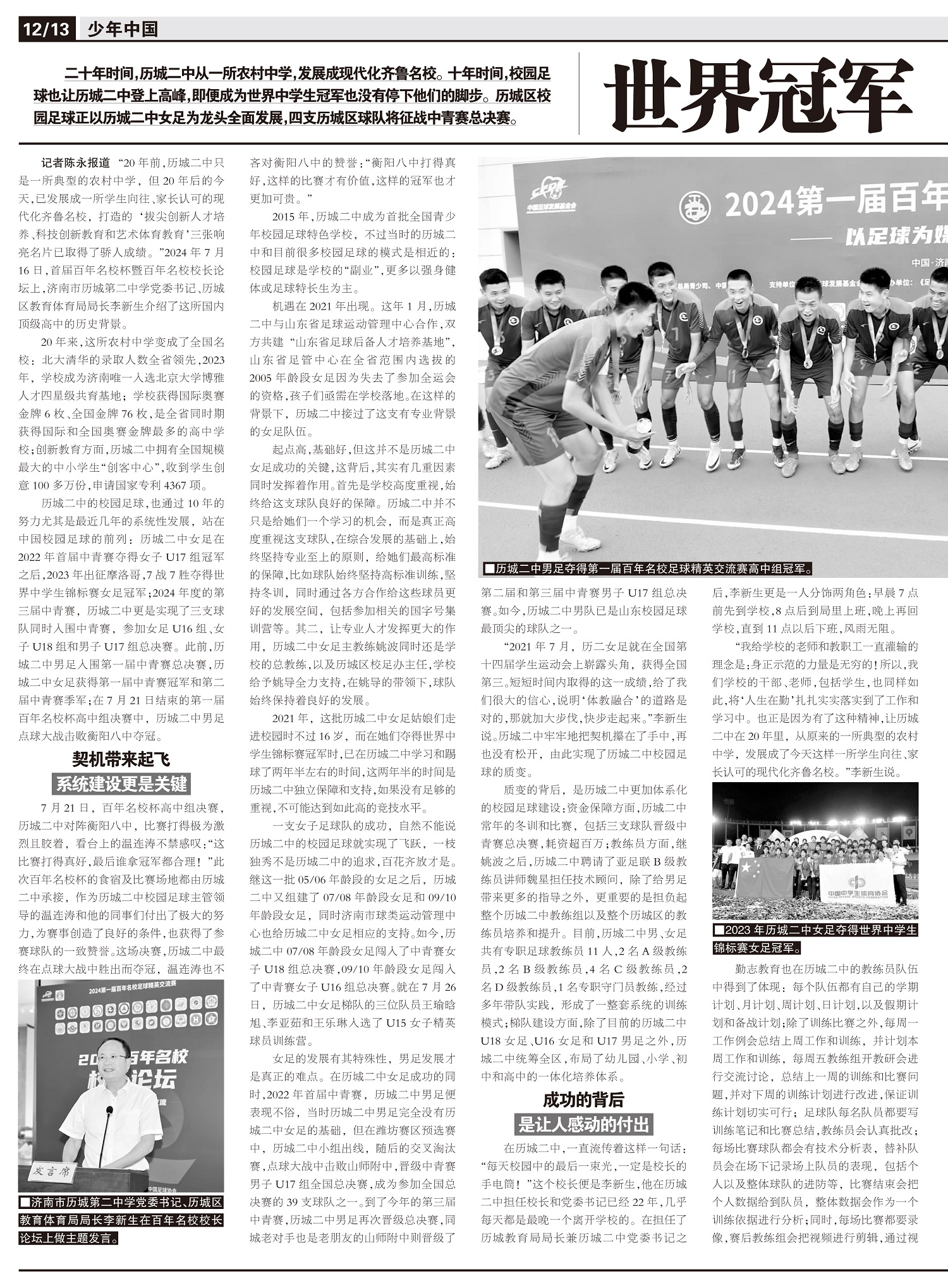 二十年时间,历城二中从一所农村中学,发展成现代化齐鲁名校。十年时间,校园足球也让历城二中登上高峰,即...
