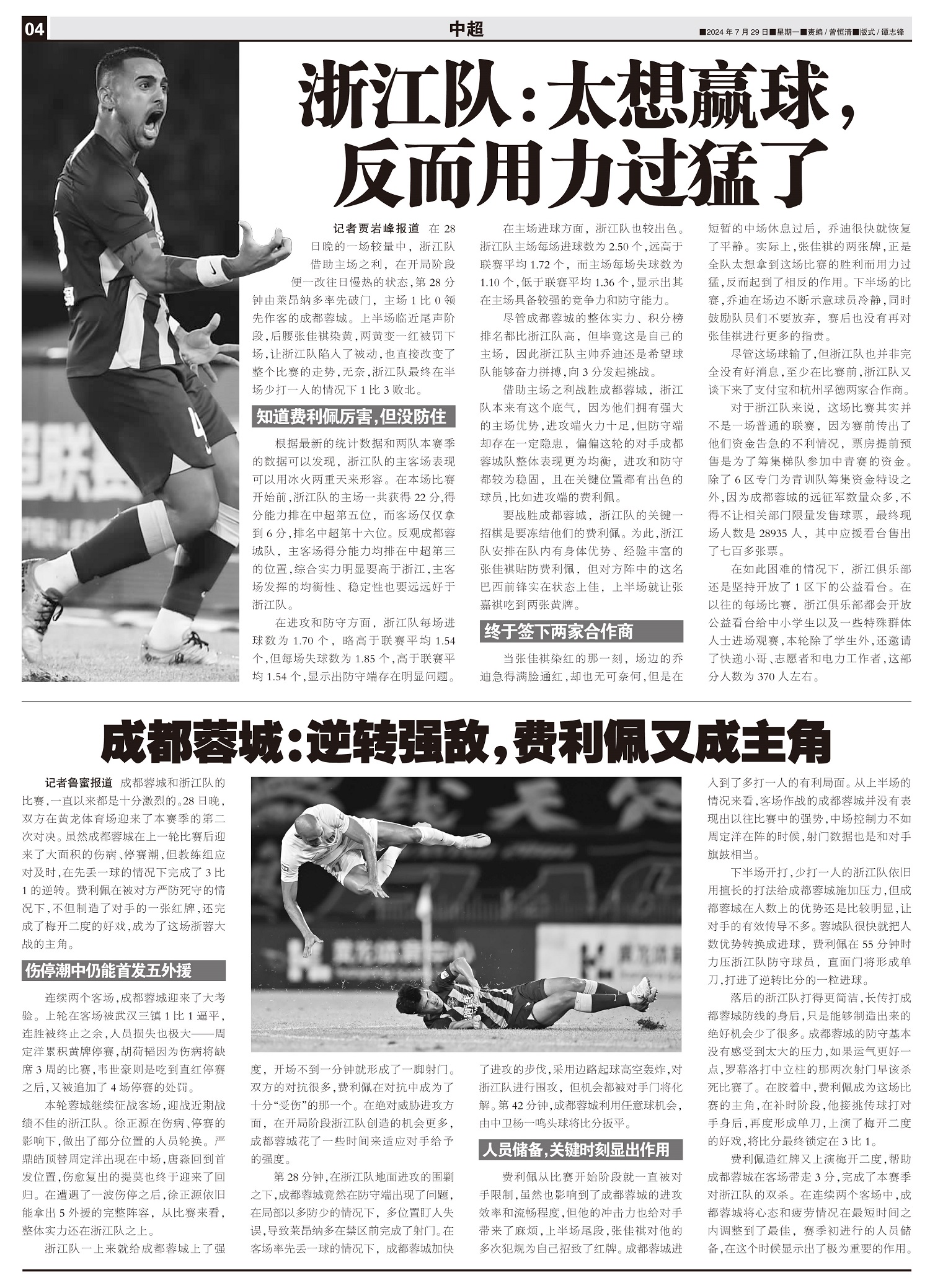 成都蓉城和浙江队的比赛,一直以来都是十分激烈的。28日晚,双方在黄龙体育场迎来了本赛季的第二次对决。...