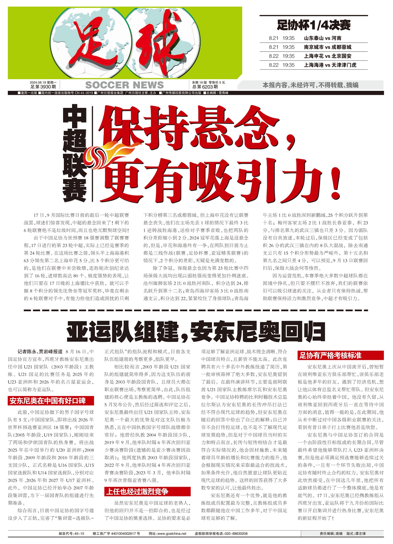 8月16日,中国足协官方宣布,西班牙教练安东尼奥出任中国U21国家队(2003年龄段)主教练。U21...