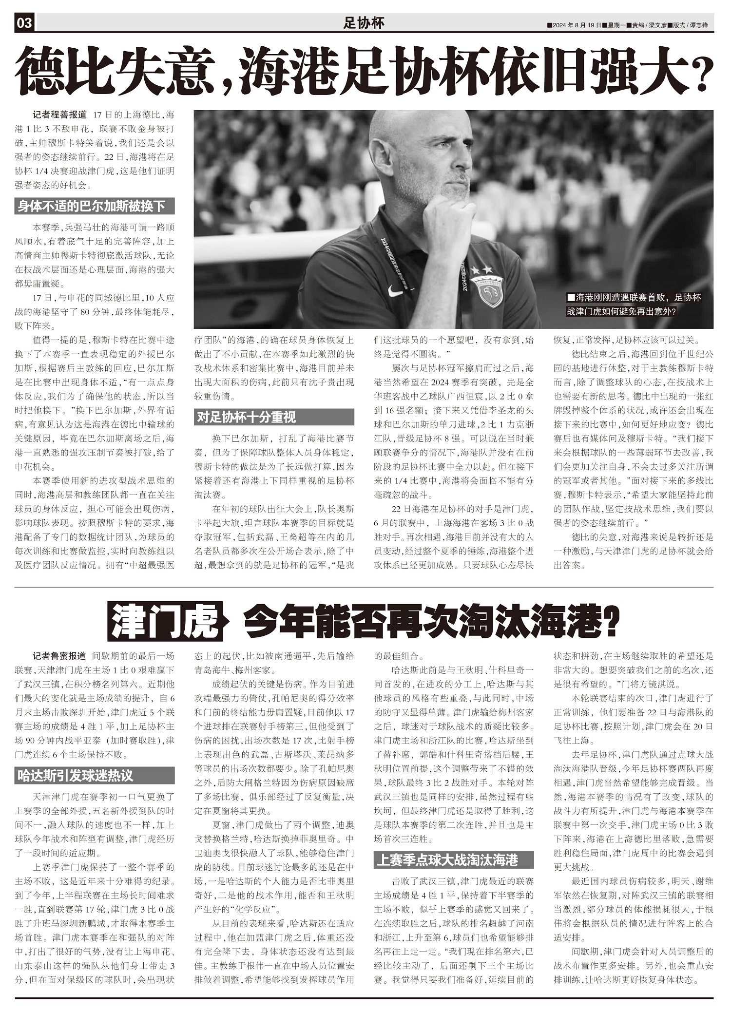 间歇期前的最后一场联赛,天津津门虎在主场1比0艰难赢下了武汉三镇,在积分榜名列第六。近期他们最大的变...