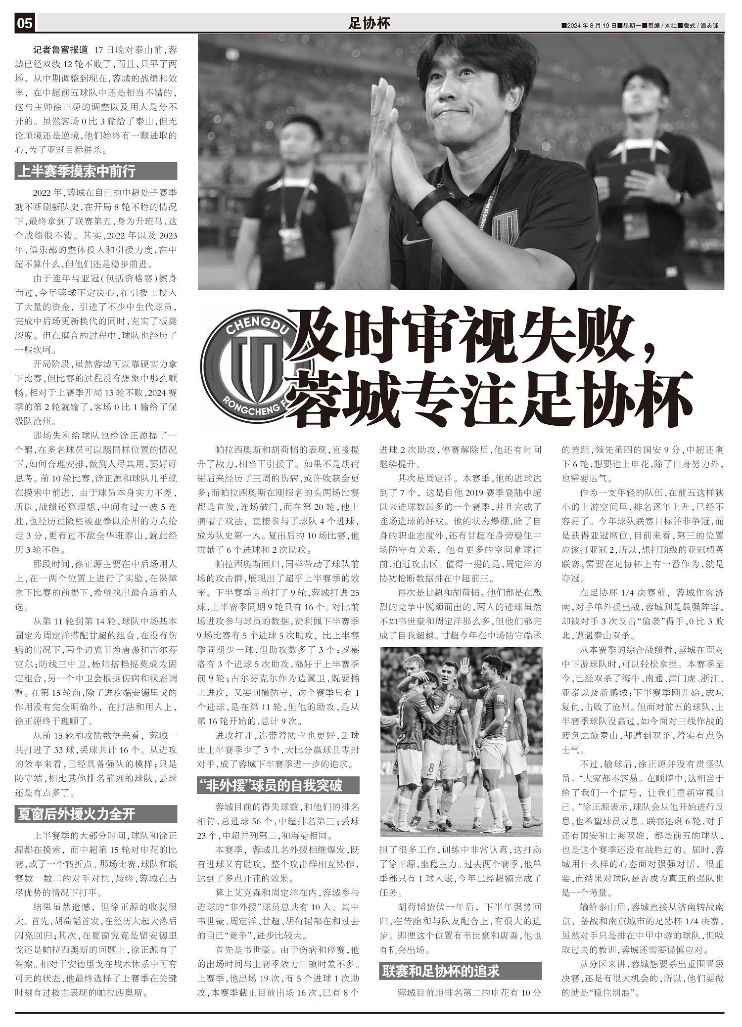 17日晚对泰山前,蓉城已经双线12轮不败了,而且,只平了两场。从中期调整到现在,蓉城的战绩和效率,在...
