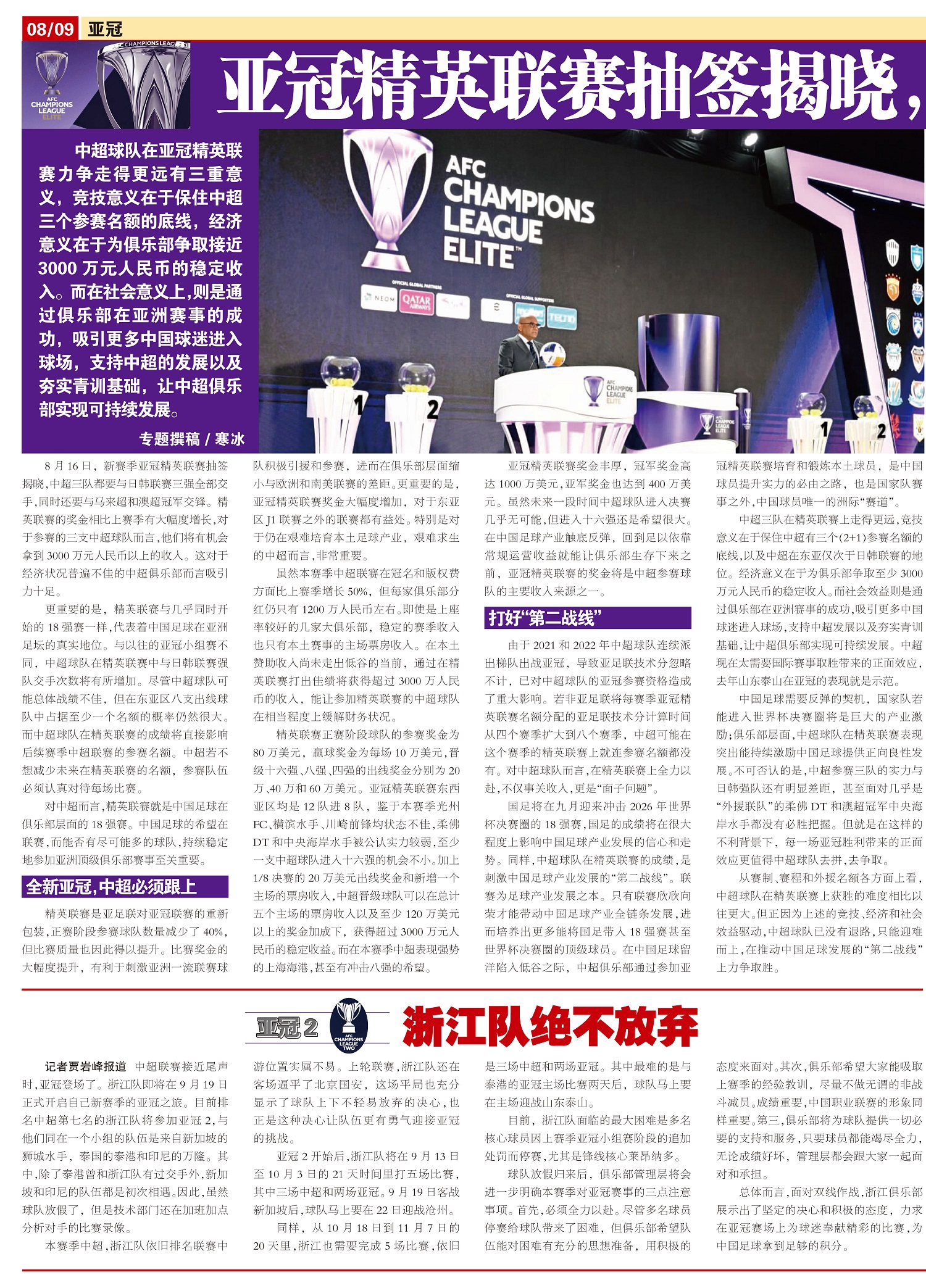 中超联赛接近尾声时,亚冠登场了。浙江队即将在9月19日正式开启自己新赛季的亚冠之旅。目前排名中超第七...