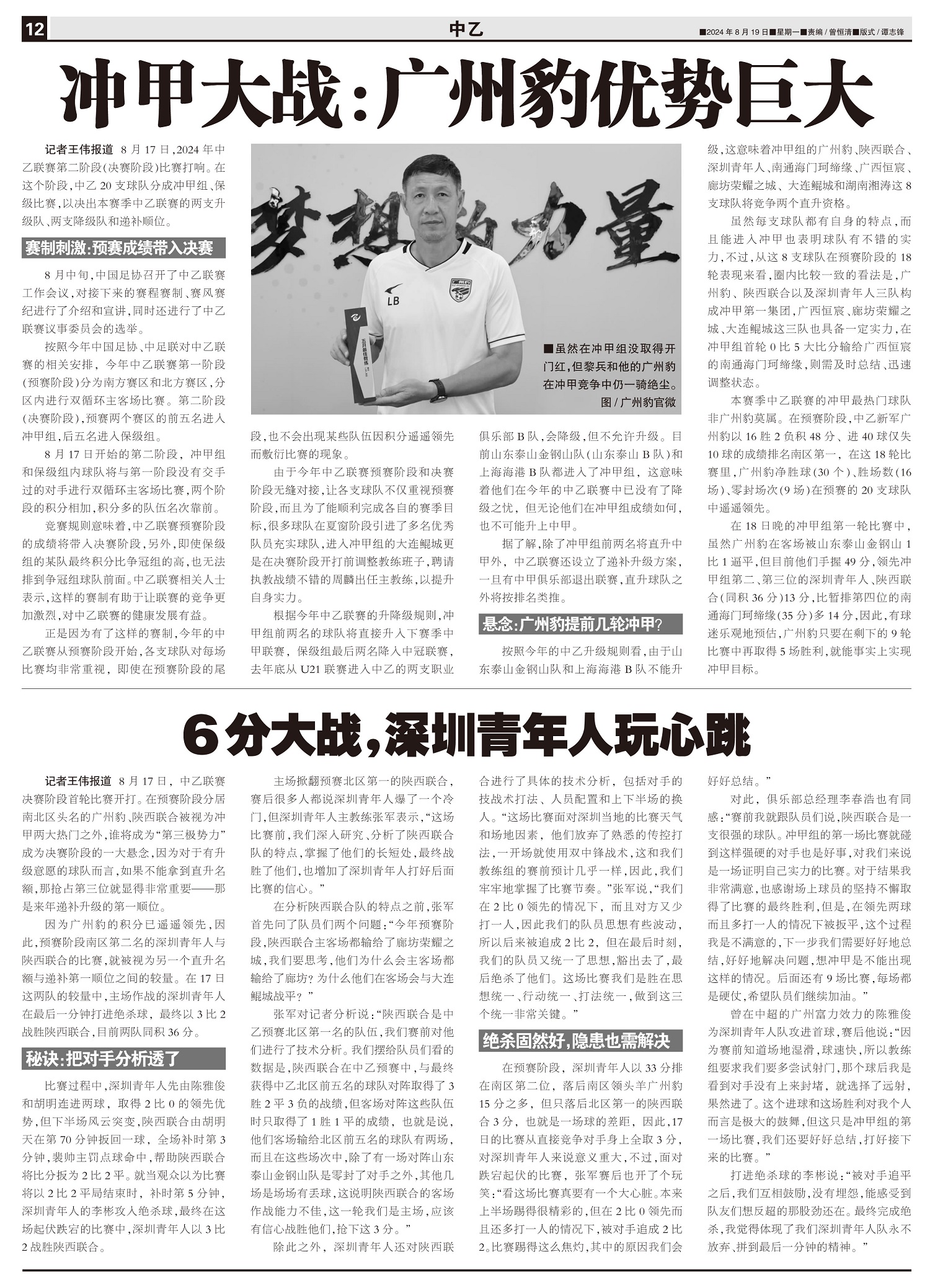 8月17日,2024年中乙联赛第二阶段(决赛阶段)比赛打响。在这个阶段,中乙20支球队分成冲甲组、保...