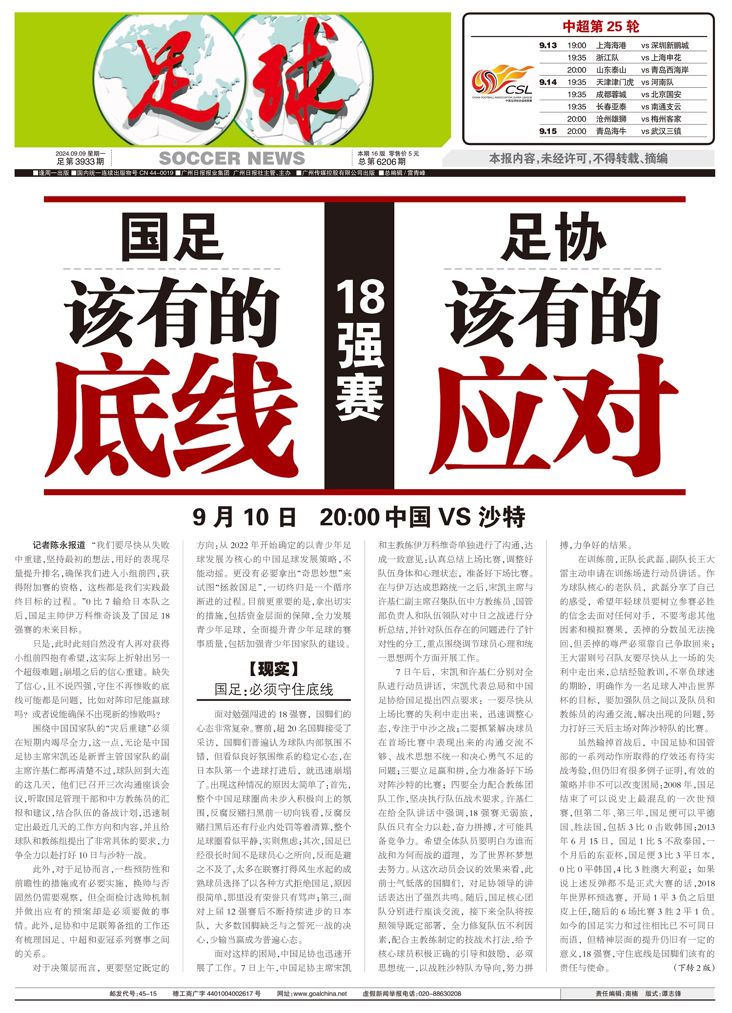 9月13日,中超将重燃战火,下周将打亚战的3支球队的比赛先打,其中泰山主场面对保级球队西海岸,由于接...