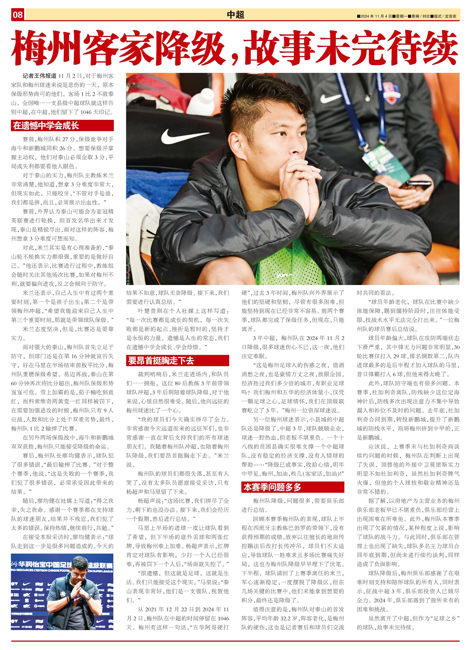 11月2日,对于梅州客家队和梅州球迷来说是悲伤的一天,原本保级形势尚可的他们,客场1比2不敌泰山,全...