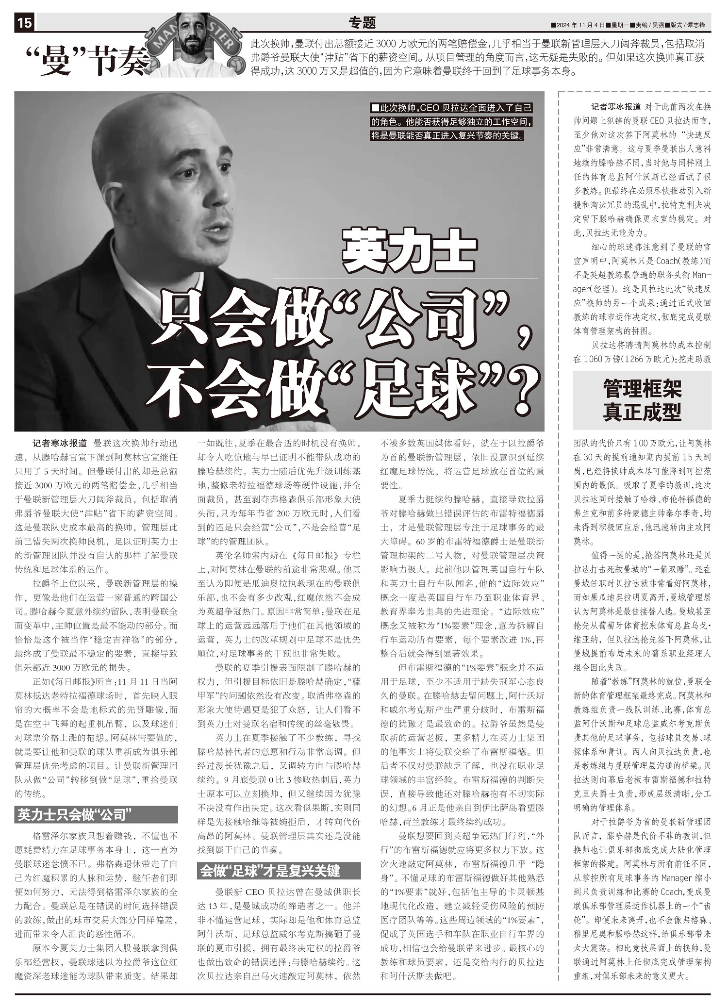 “曼”节奏此次换帅,曼联付出总额接近3000万欧元的两笔赔偿金,几乎相当于曼联新管理层大刀阔斧裁员,...