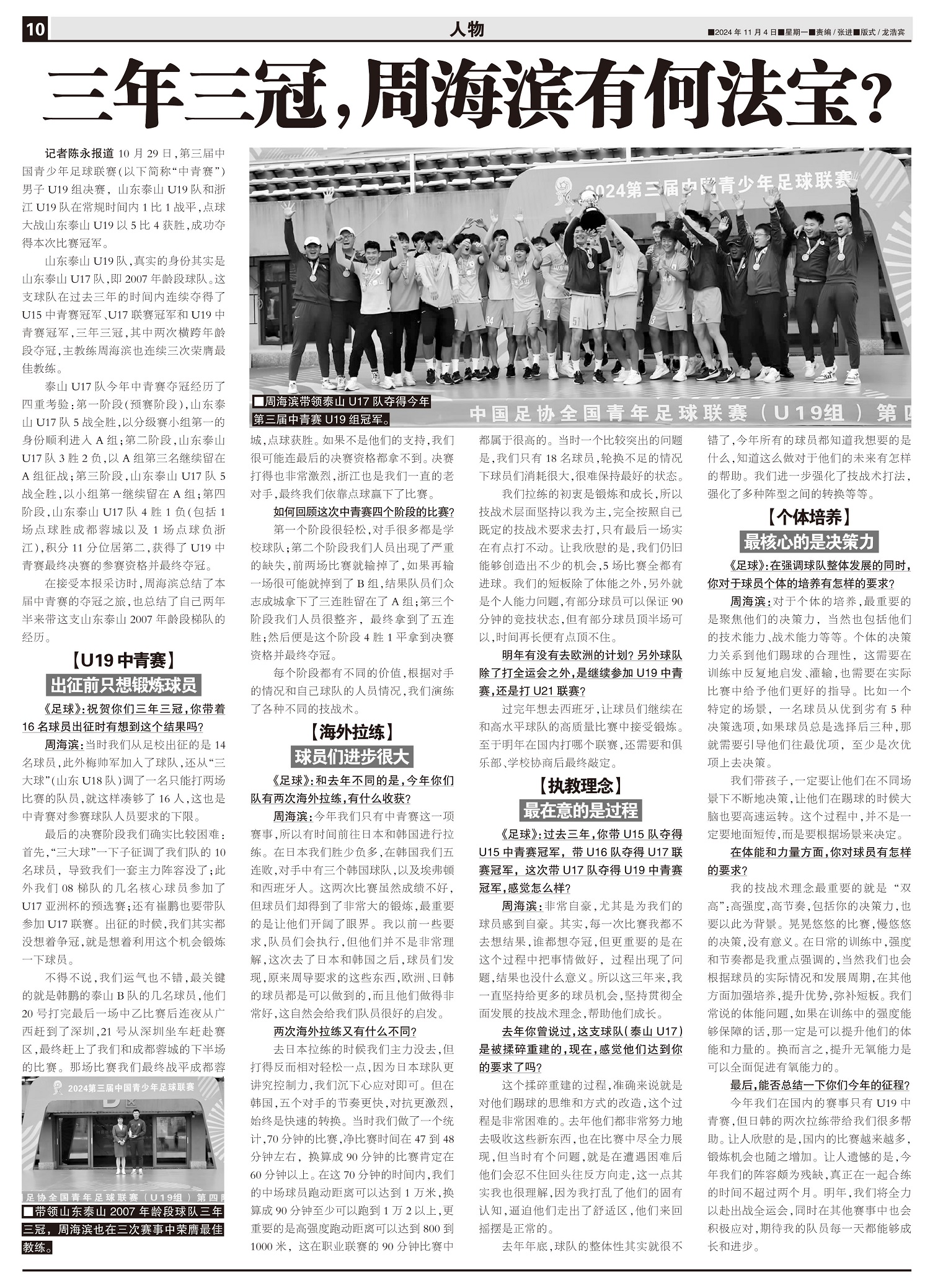 10月29日,第三届中国青少年足球联赛(以下简称“中青赛”)男子U19组决赛,山东泰山U19队和浙江...