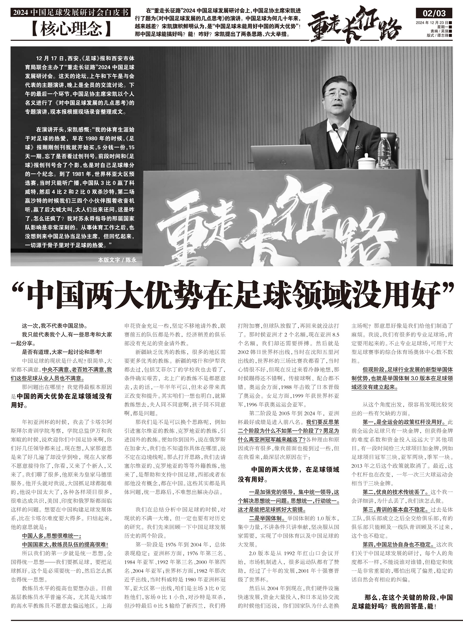 由《足球》报和西安市体育局联合主办的“重走长征路——2024中国足球发展研讨会”,如今已经过去了一周...