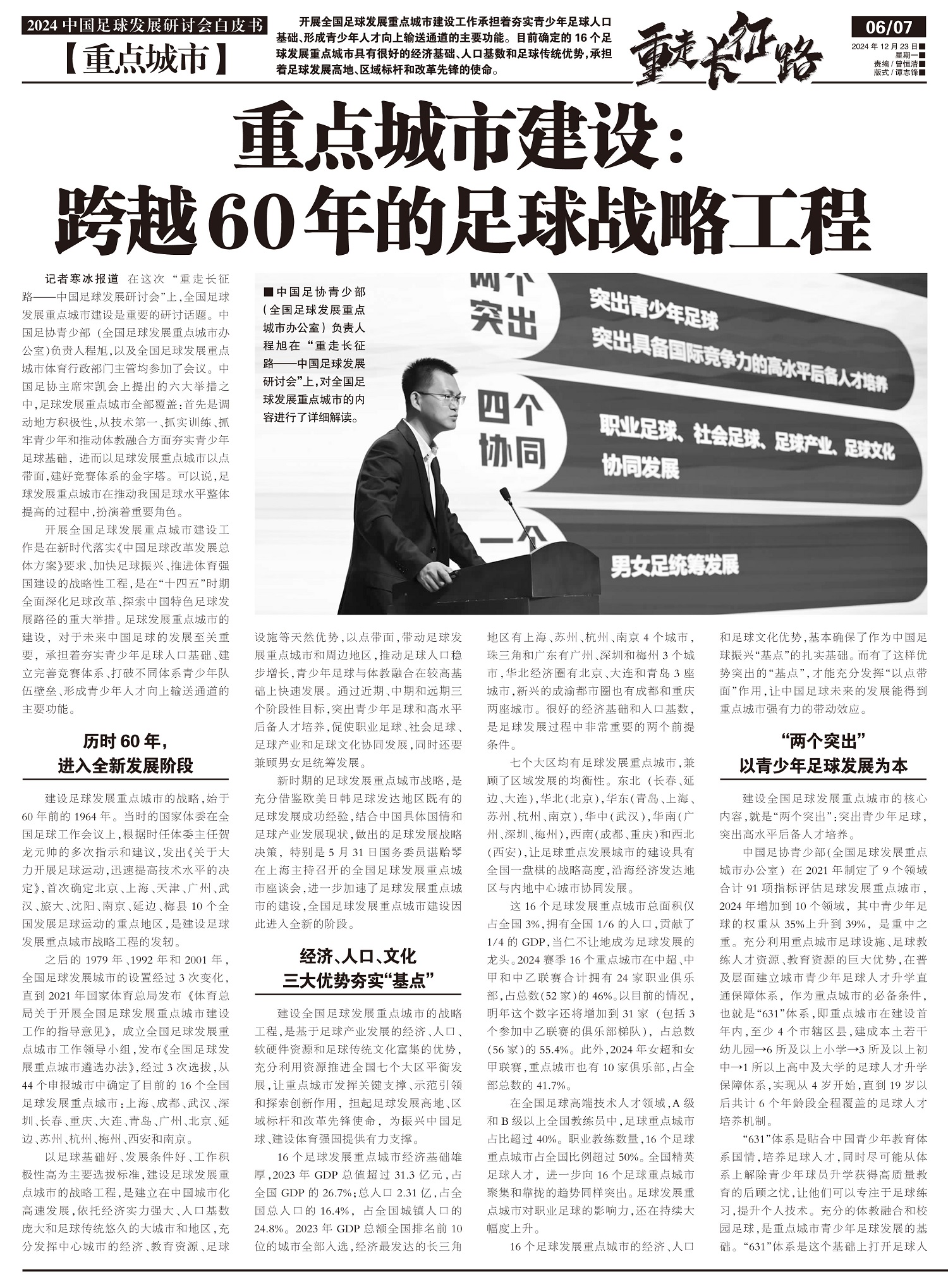 2024中国足球发展研讨会白皮书重点城市开展全国足球发展重点城市建设工作承担着夯实青少年足球人口基础...