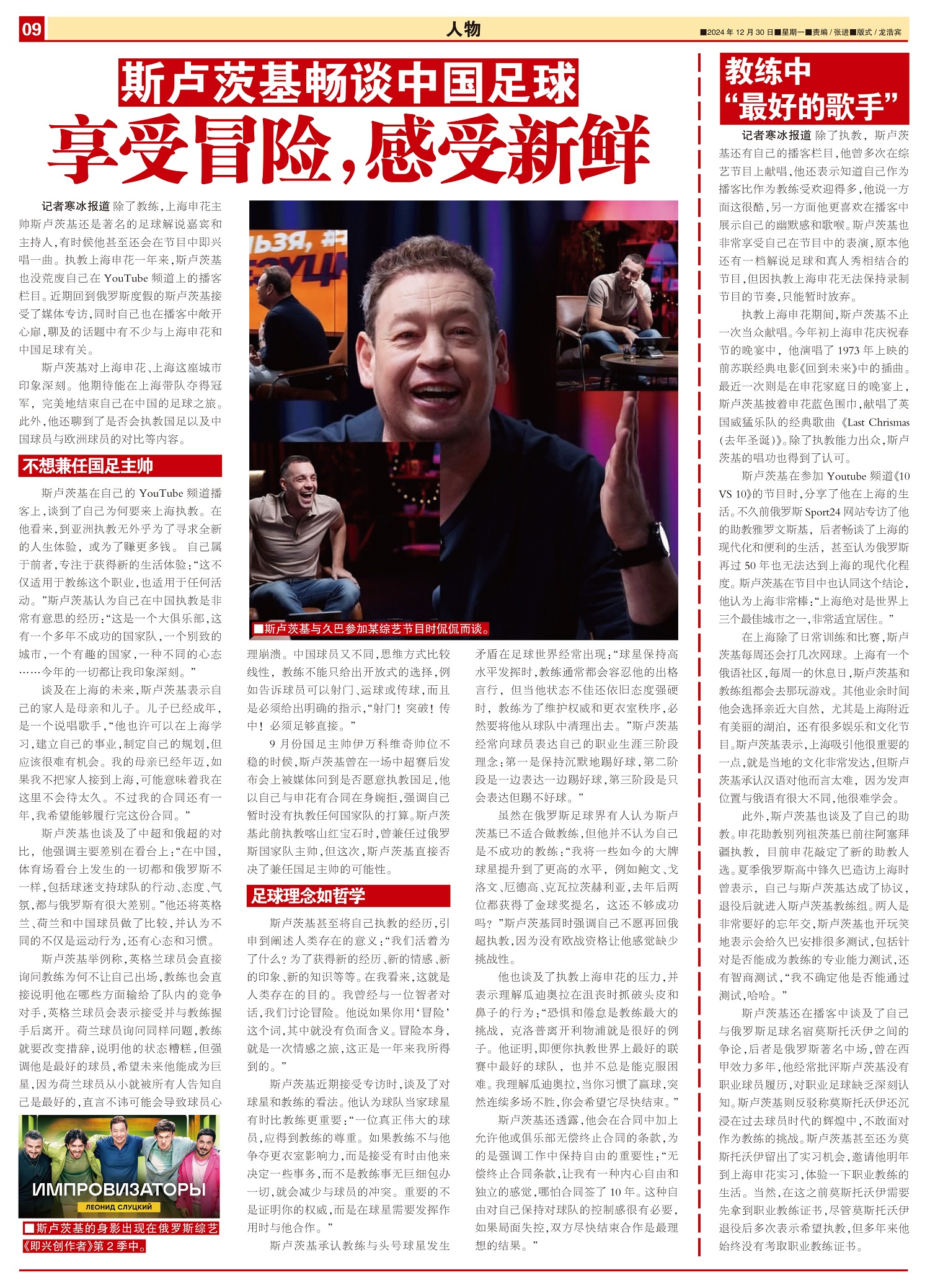 除了教练,上海申花主帅斯卢茨基还是著名的足球解说嘉宾和主持人,有时候他甚至还会在节目中即兴唱一曲。执...
