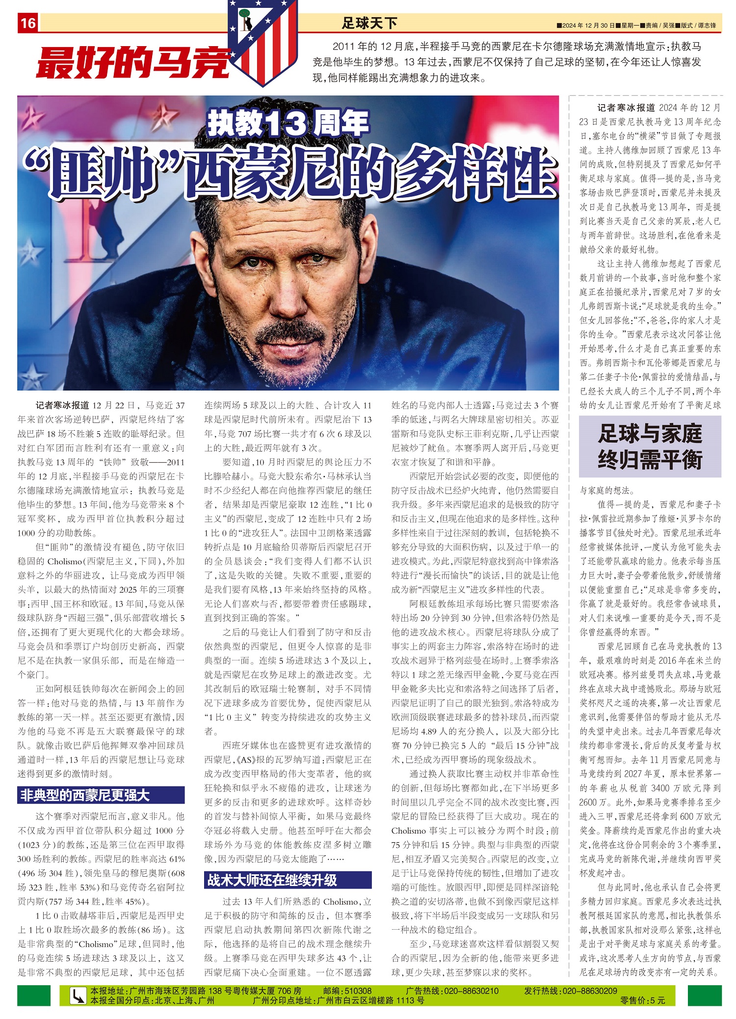 2024年的12月23日是西蒙尼执教马竞13周年纪念日,塞尔电台的“横梁”节目做了专题报道。主持人德...