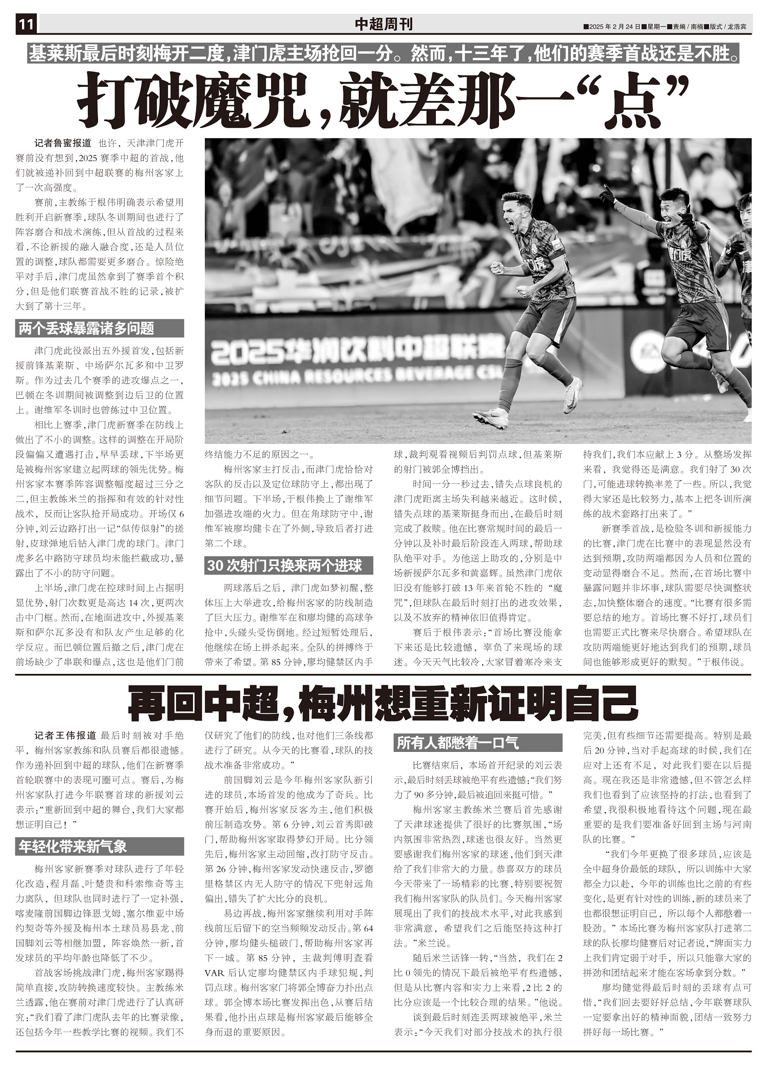 2025中超首轮第二个比赛日,下午四场比赛全部战成平局。然而,相比其他三场缺乏流畅技战术配合的绞杀战...