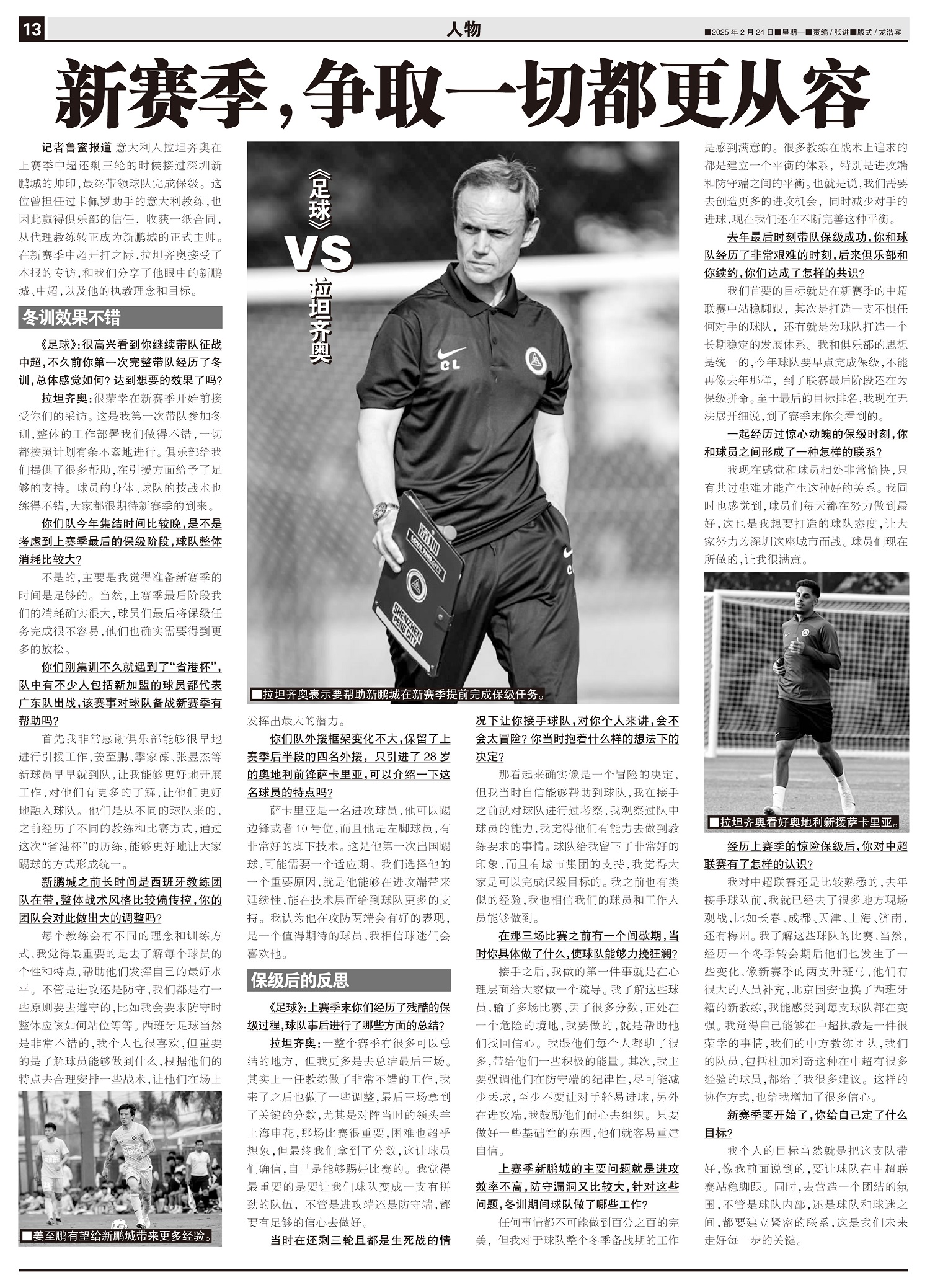 意大利人拉坦齐奥在上赛季中超还剩三轮的时候接过深圳新鹏城的帅印,最终带领球队完成保级。这位曾担任过卡...