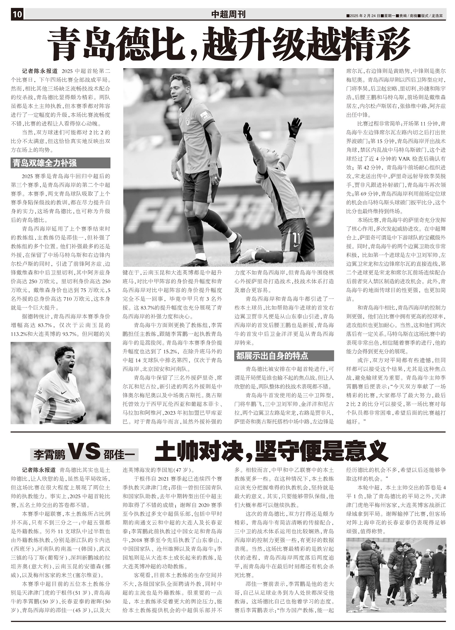 青岛德比其实也是土帅德比,让人欣慰的是,虽然是平局收场,但这场比赛在很大程度上展现了两位土帅的执教能...