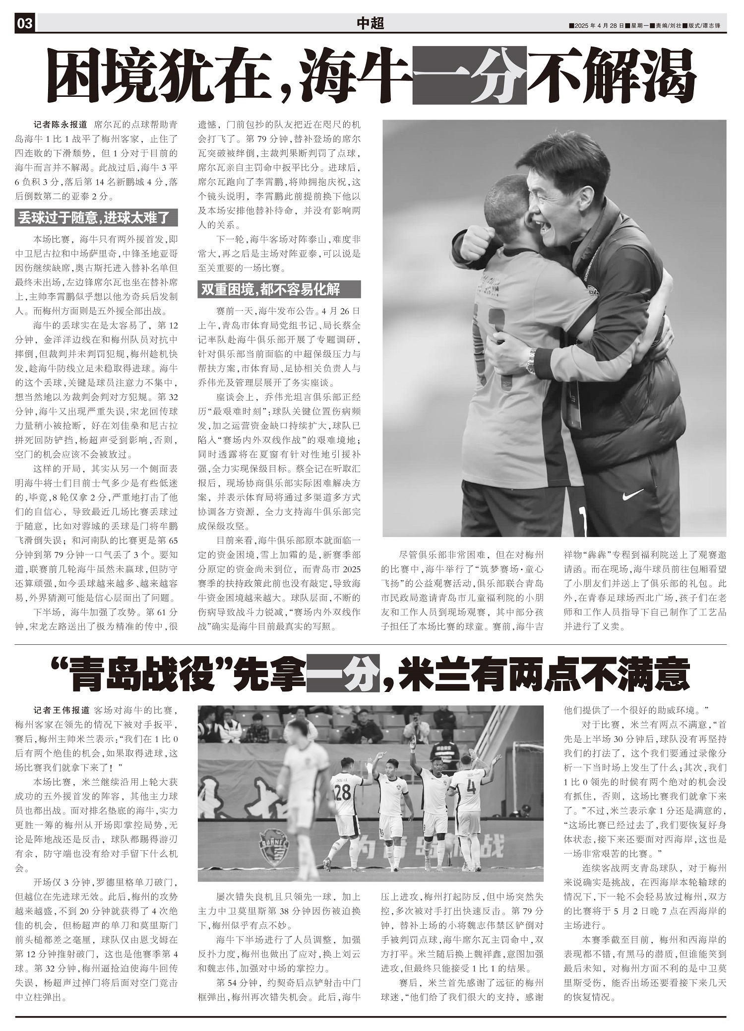 2025中超联赛9轮过后,二年级生青岛西海岸成为本赛季中超联赛的最大黑马。这支球队本赛季变动不小,曾...