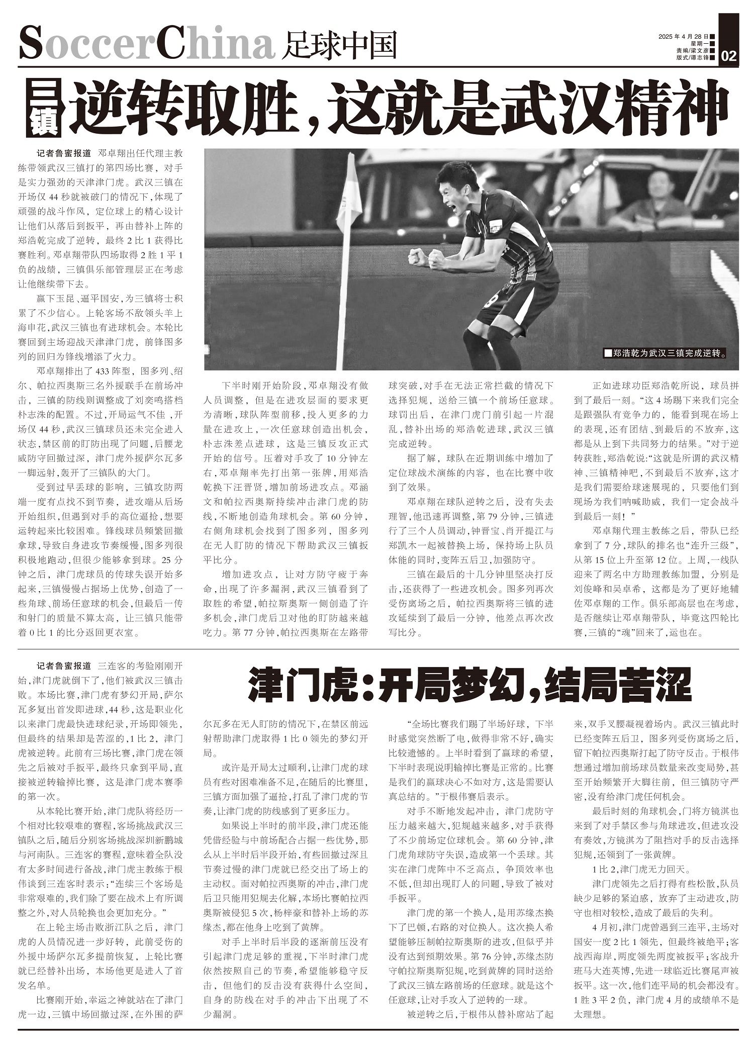 邓卓翔出任代理主教练带领武汉三镇打的第四场比赛,对手是实力强劲的天津津门虎。武汉三镇在开场仅44秒就...