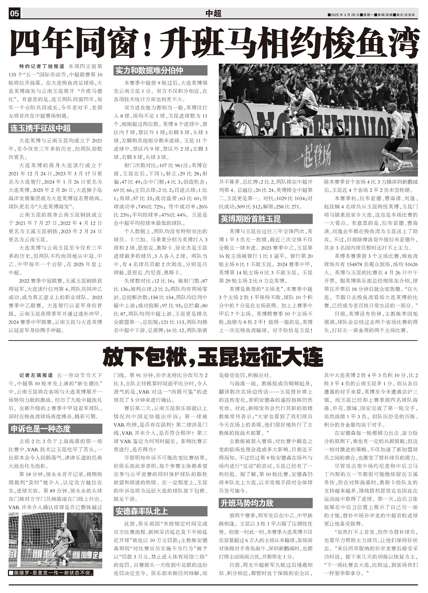 五一劳动节当天下午,中超第10轮率先上演的“新生德比”中,云南玉昆将在客场与大连英博展开一场势均力敌...