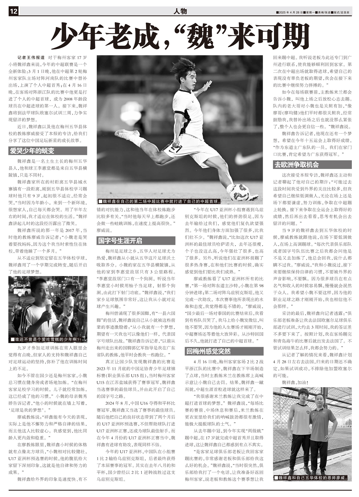 对于梅州客家17岁小将魏祥鑫来说,今年的中超联赛是一个全新体验:3月1日晚,他在中超第2轮梅州客家队...