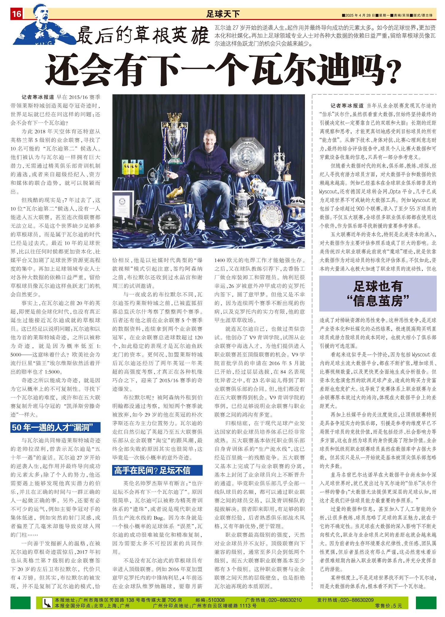 当年从业余联赛发现瓦尔迪的“伯乐”沃尔什,虽然很看重大数据,但始终坚持最终的引援决定权一定要靠自己的...