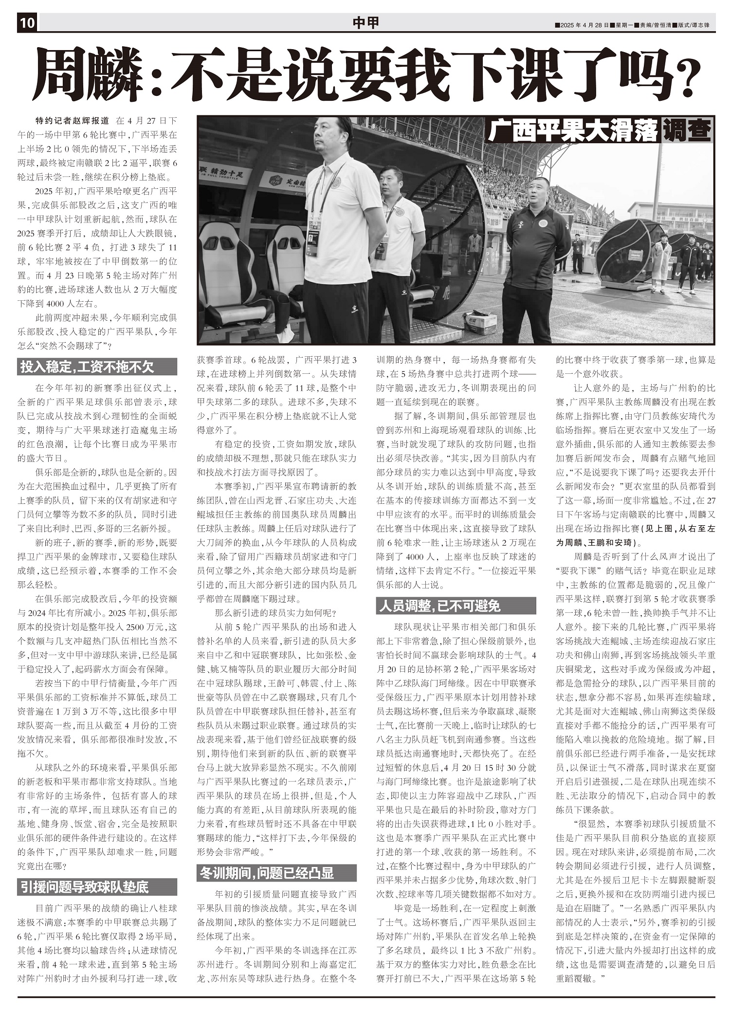 在4月27日下午的一场中甲第6轮比赛中,广西平果在上半场2比0领先的情况下,下半场连丢两球,最终被定...