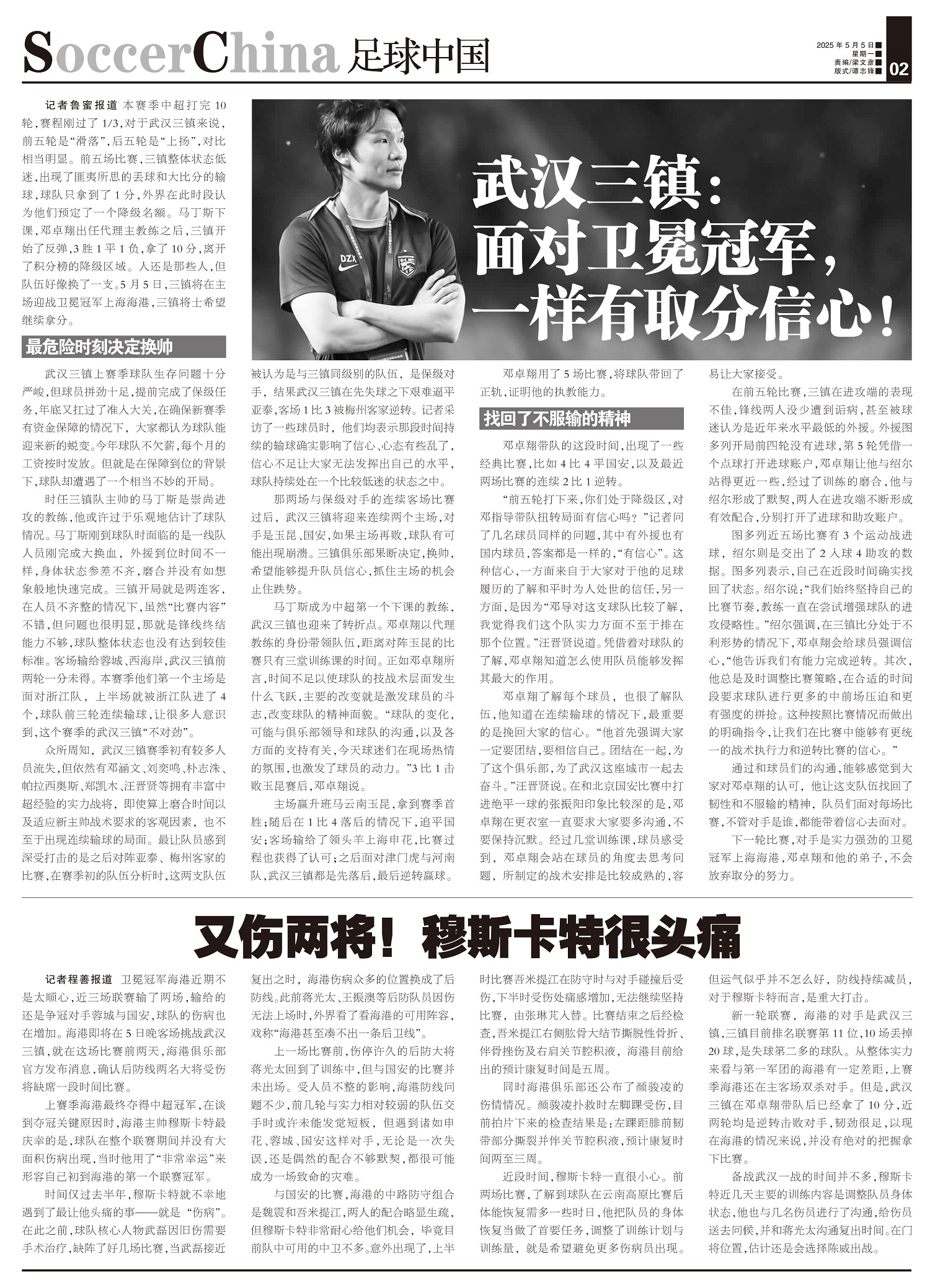 本赛季中超打完10轮,赛程刚过了1/3,对于武汉三镇来说,前五轮是“滑落”,后五轮是“上扬”,对比相...