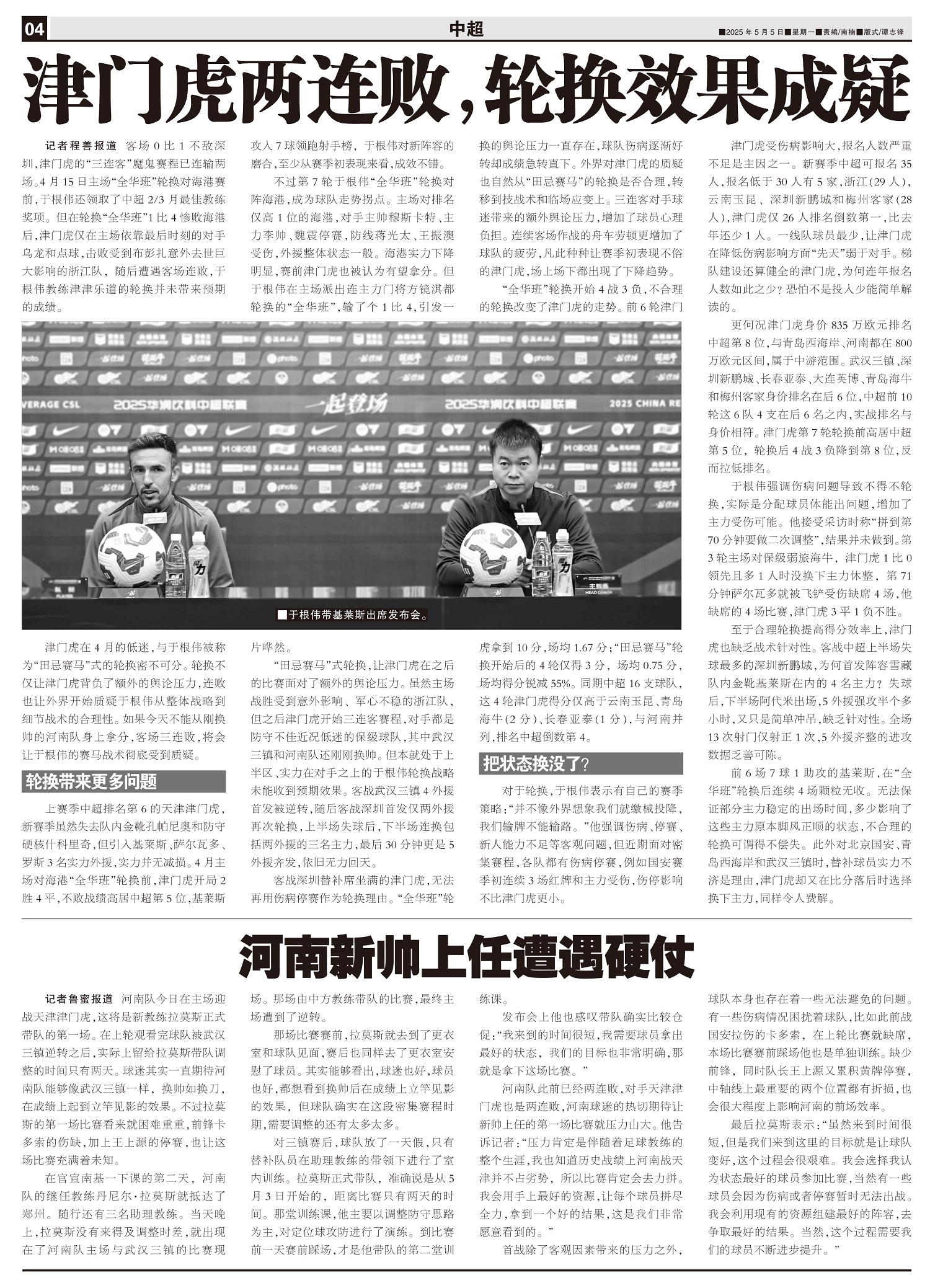 客场0比1不敌深圳,津门虎的“三连客”魔鬼赛程已连输两场。4月15日主场“全华班”轮换对海港赛前,于...