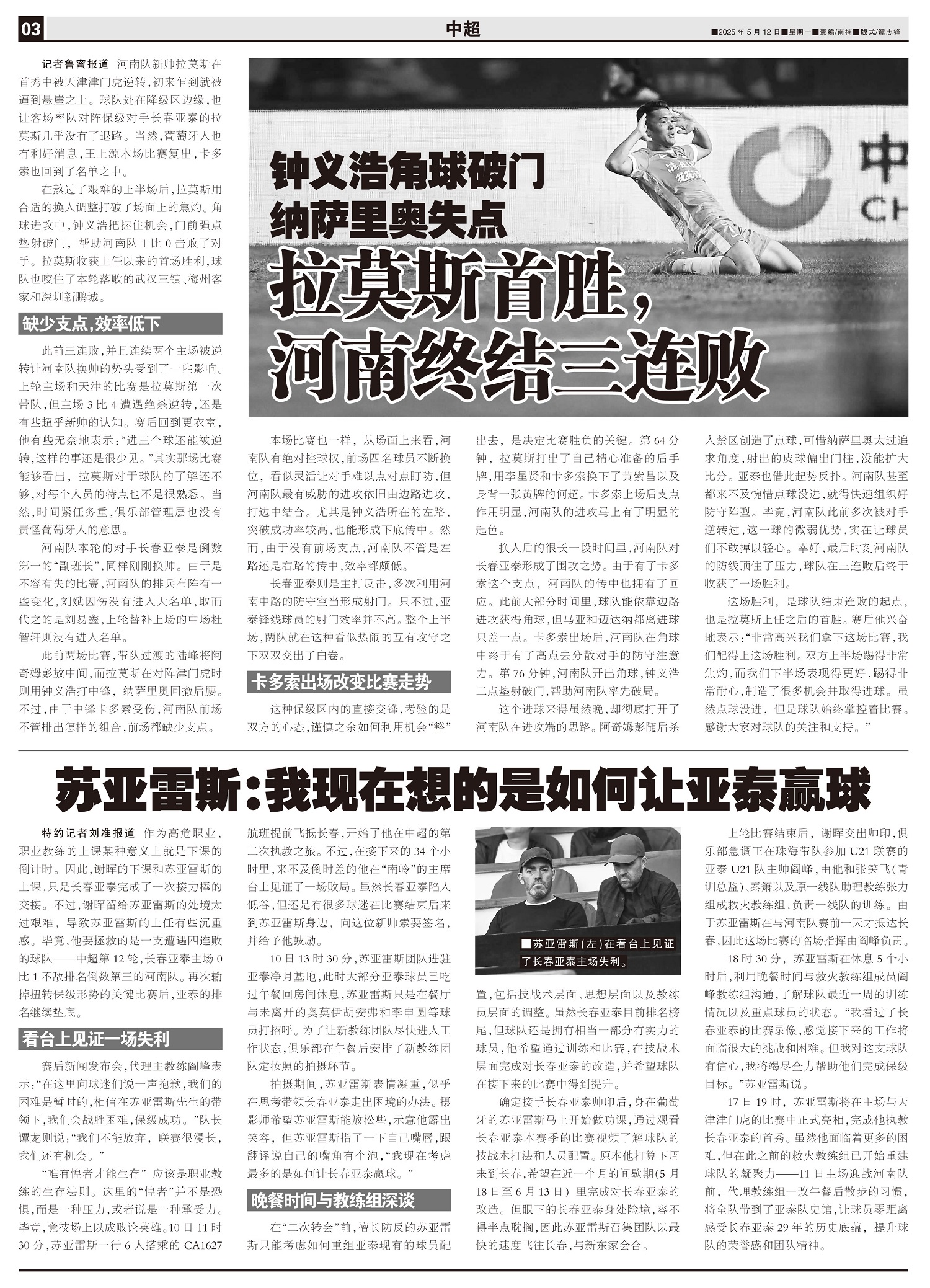钟义浩角球破门 纳萨里奥失点 拉莫斯首胜,河南终结三连败