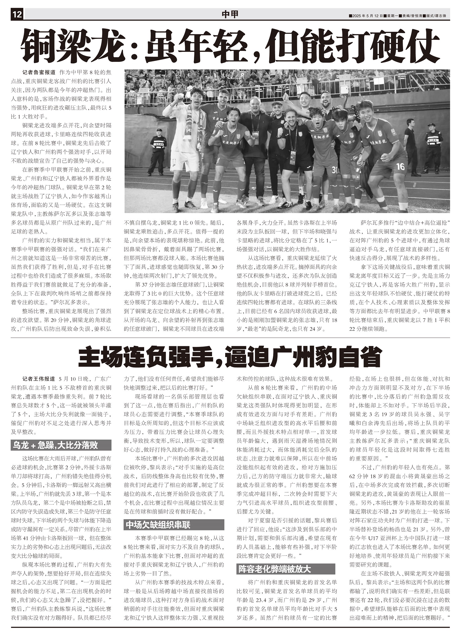 作为中甲第8轮的焦点战,重庆铜梁龙客战广州豹的比赛引人关注,因为两队都是今年的冲超热门。出人意料的是...