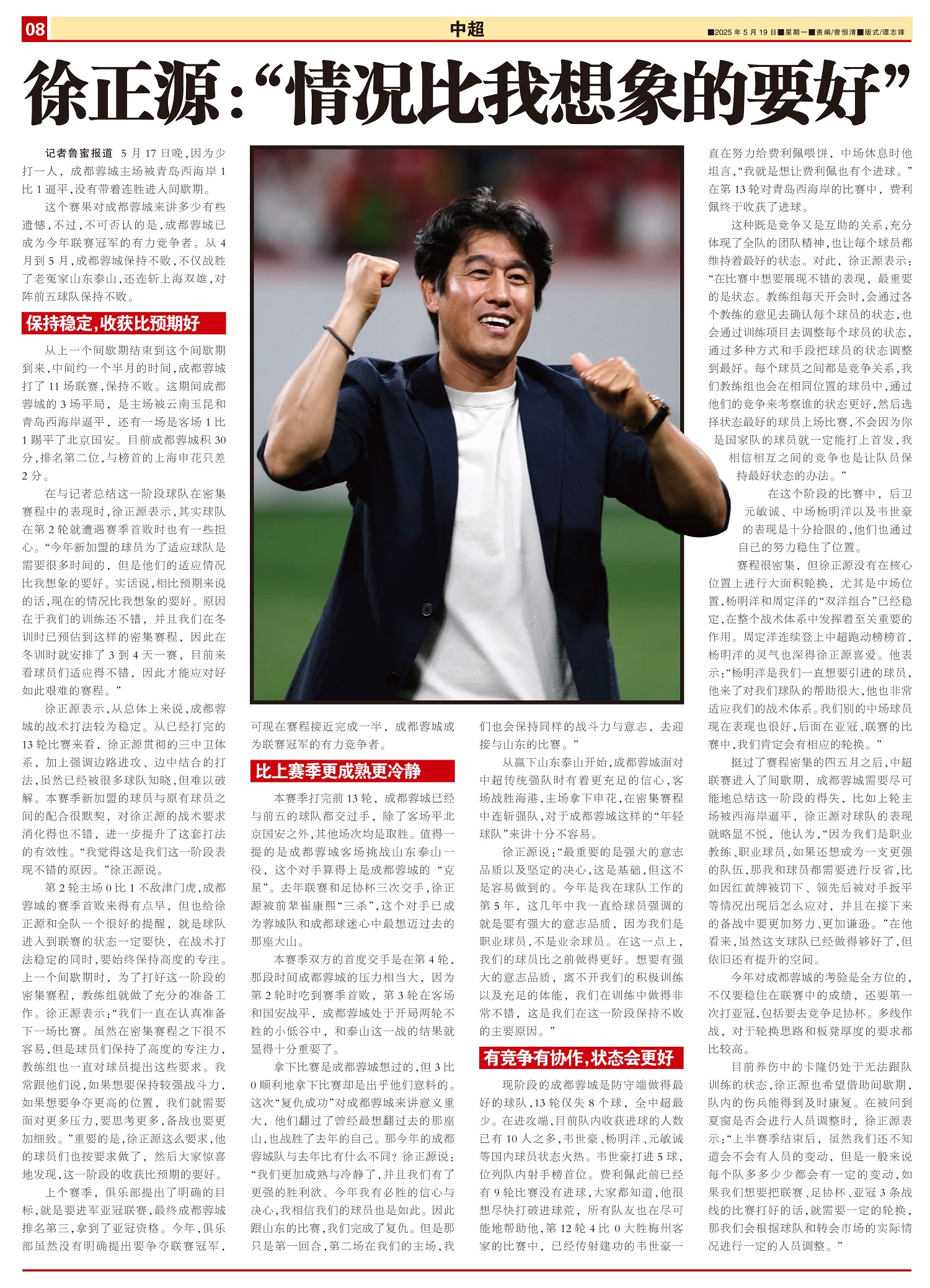 5月17日晚,因为少打一人,成都蓉城主场被青岛西海岸1比1逼平,没有带着连胜进入间歇期。