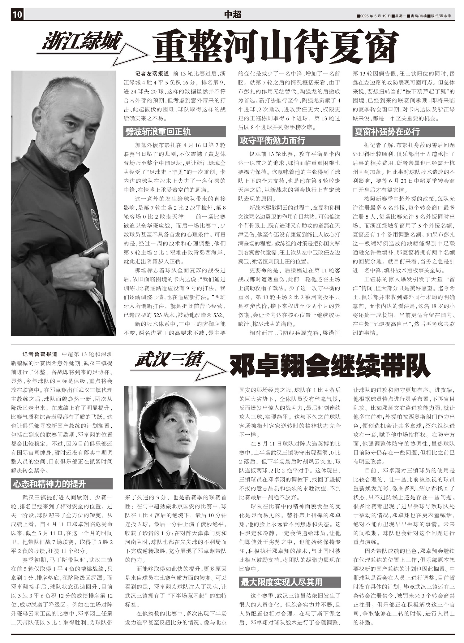 前13轮比赛过后,浙江绿城4胜4平5负积16分,排名第9,进24球失20球,这样的数据虽然并不符合内...