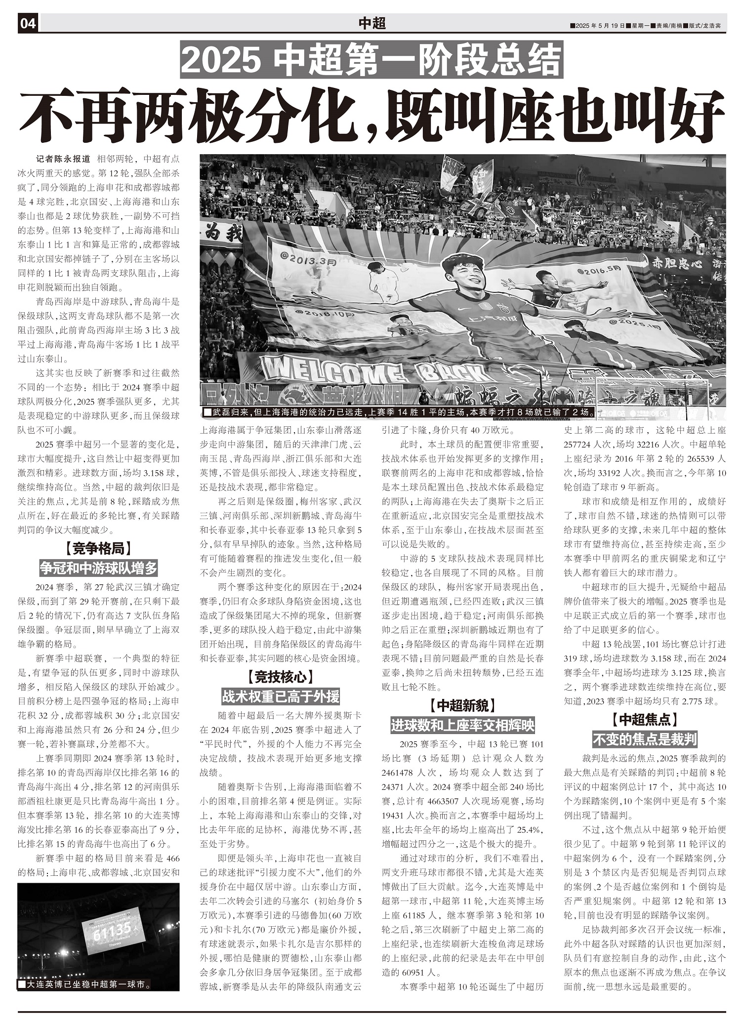 2025中超第一阶段总结 不再两极分化,既叫座也叫好