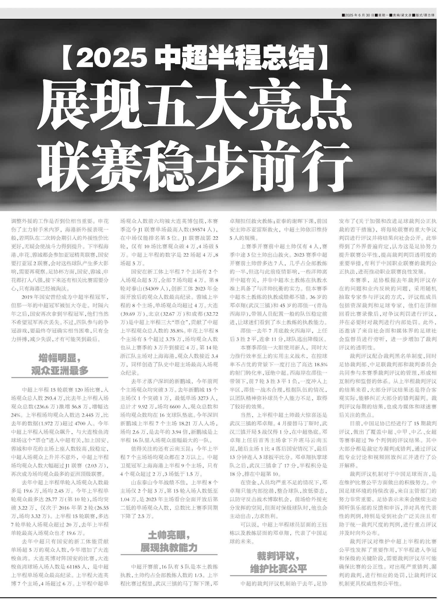 【2025中超半程总结】 展现五大亮点 联赛稳步前行