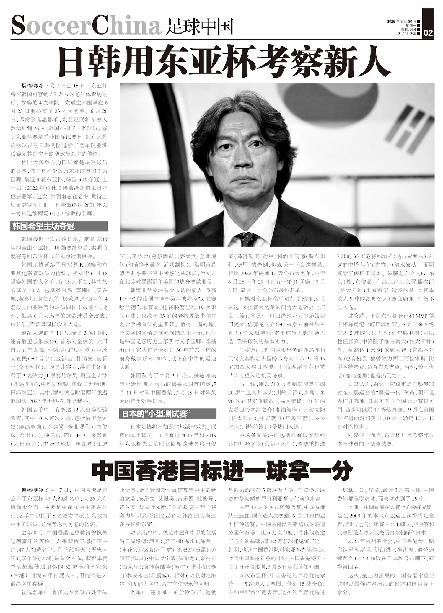 6月17日,中国香港足总公布了东亚杯47人初选名单,但26人名单尚未公布,主要是中超和中甲还在进行,...