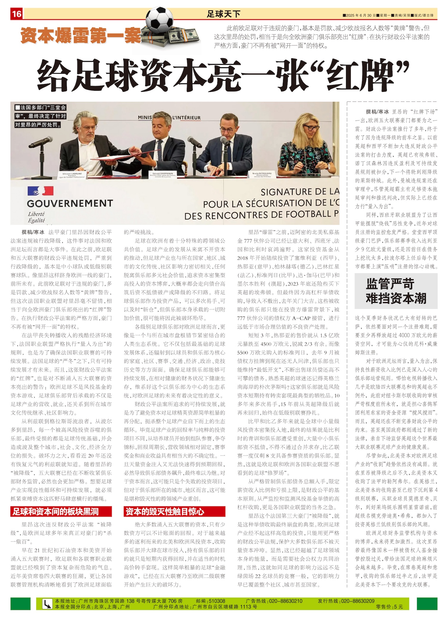 里昂因违反法国职业联盟的财政公平规则,被国家财务监管委员会颁布行政降级令。这是财政公平规则在欧洲足坛...