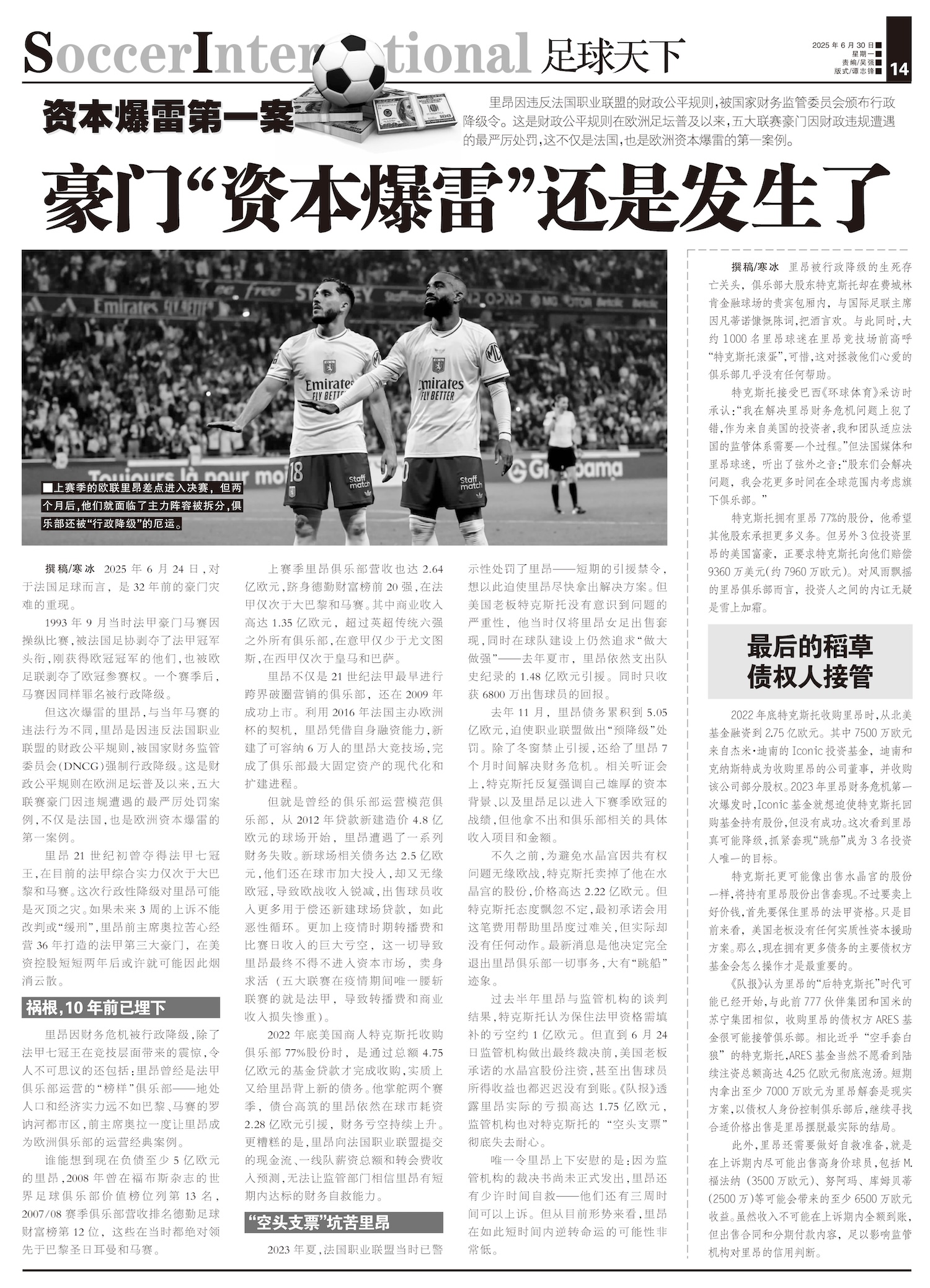 资本爆雷第一案里昂因违反法国职业联盟的财政公平规则,被国家财务监管委员会颁布行政降级令。这是财政公平...