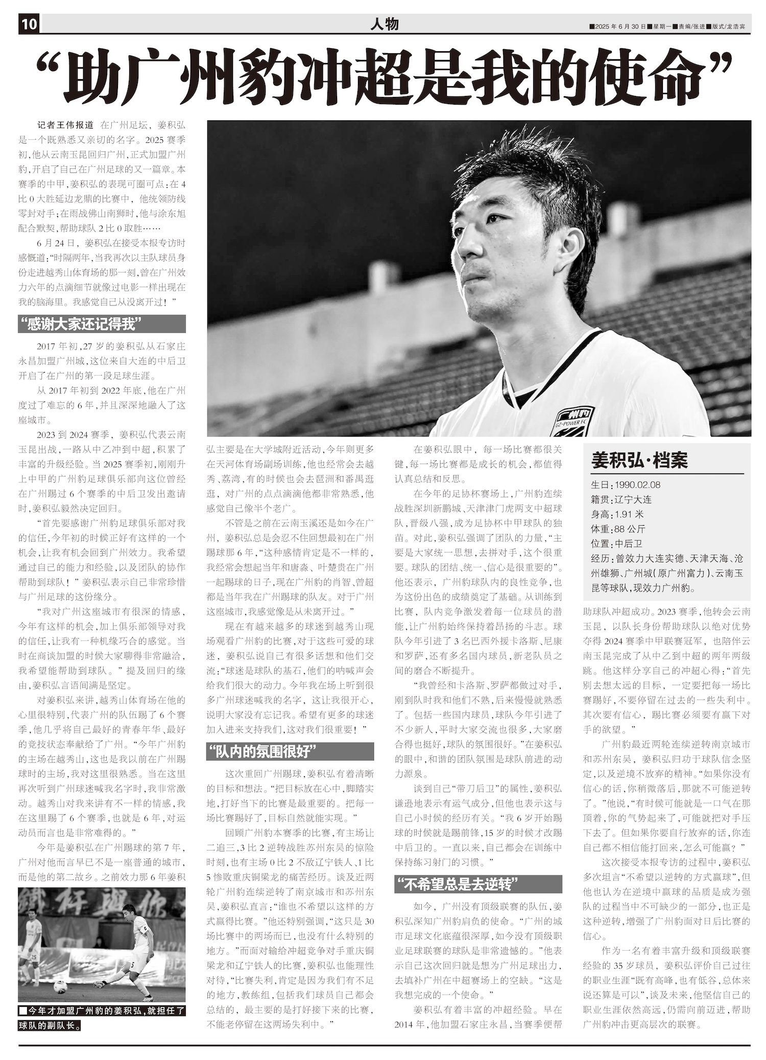 在广州足坛,姜积弘是一个既熟悉又亲切的名字。2025赛季初,他从云南玉昆回归广州,正式加盟广州豹,开...