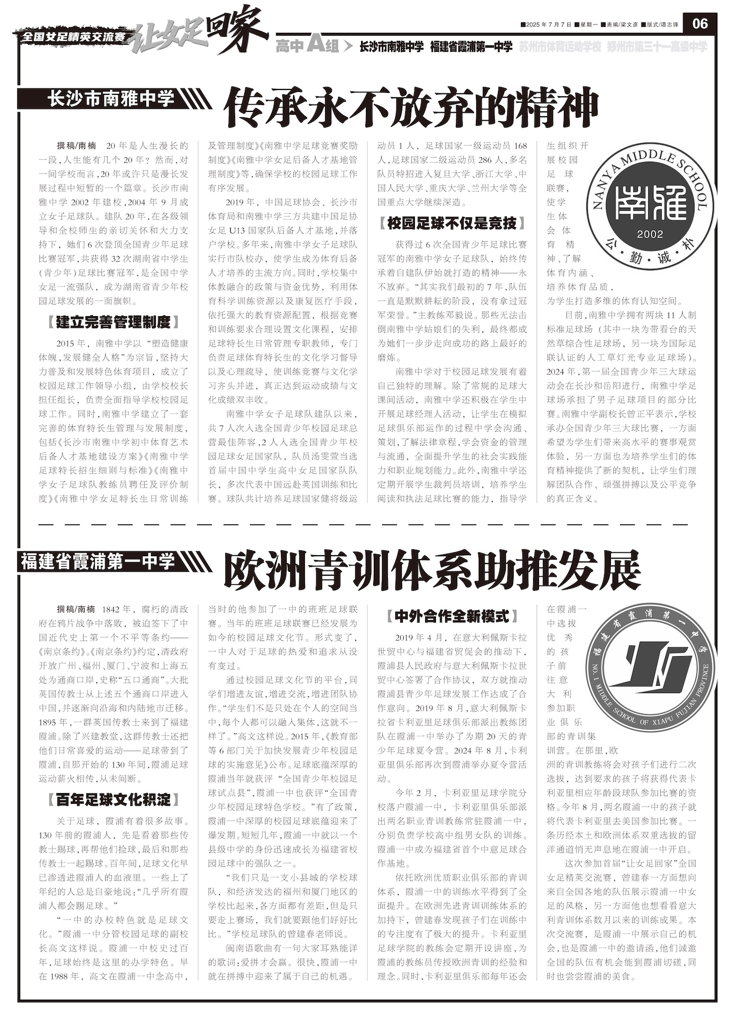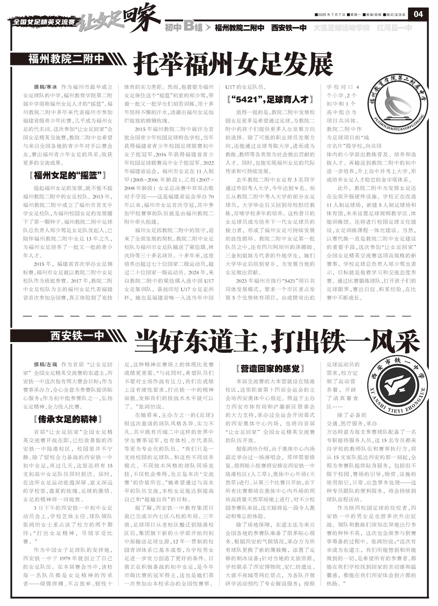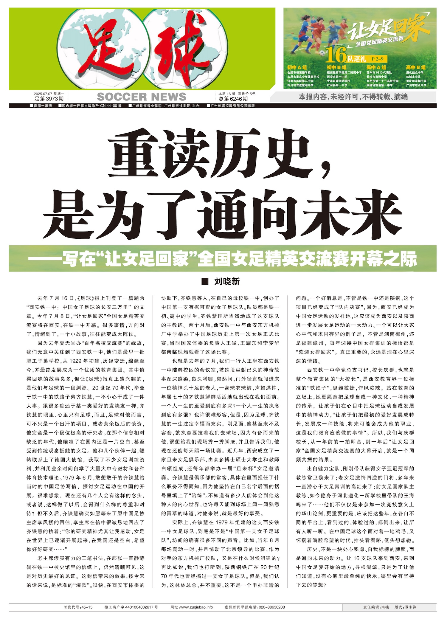 去年7月16日,《足球》报上刊登了一篇题为“西安铁一中:中国女子足球的长安三万里”的文章。今年7月8...