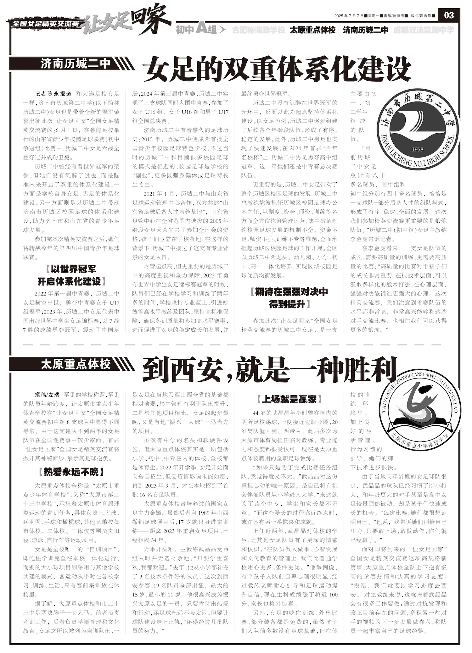 和大连足校女足一样,济南市历城第二中学(以下简称历城二中)女足也是带着全新的冠军荣誉出征此次“让女足...