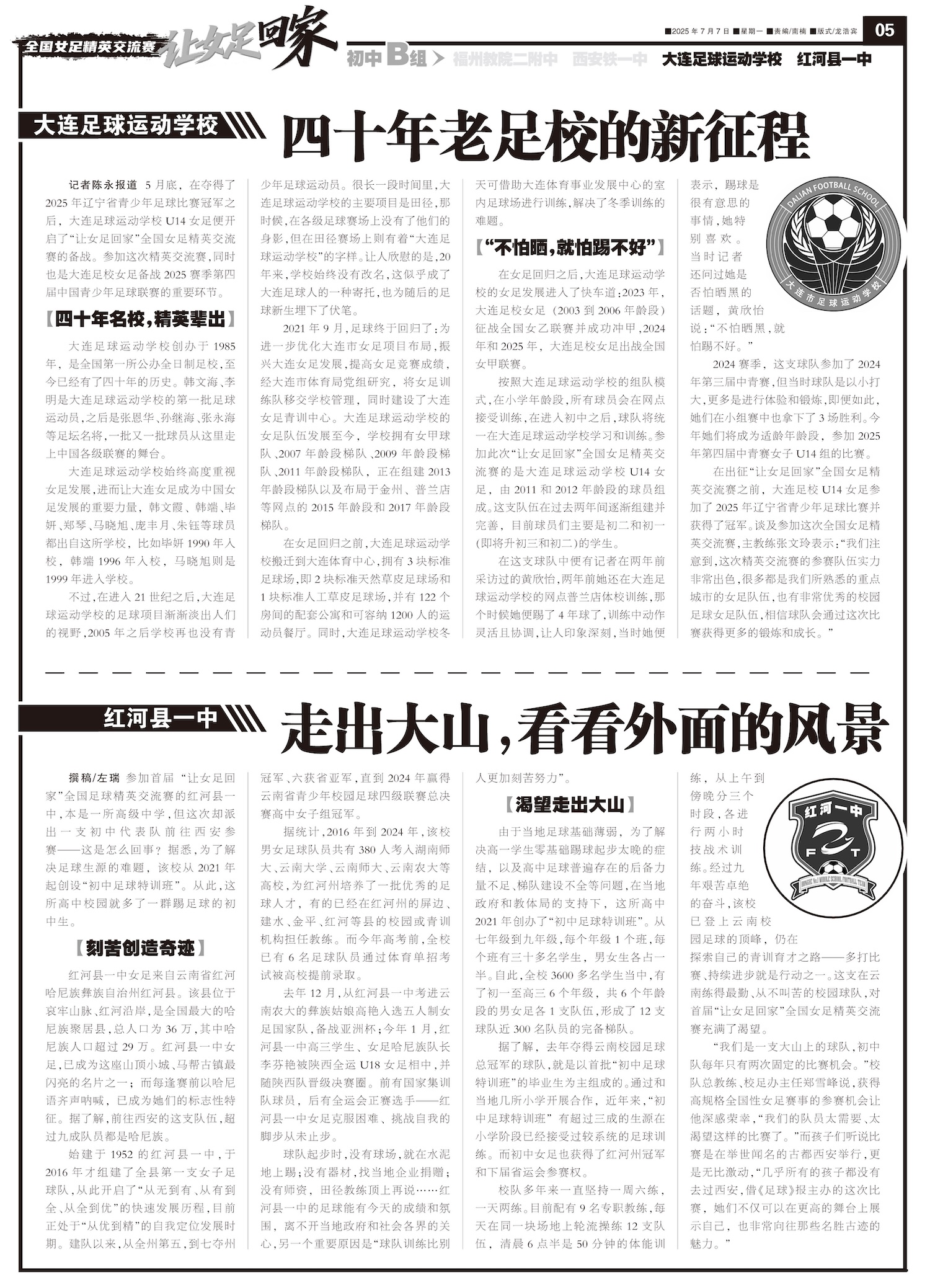 5月底,在夺得了2025年辽宁省青少年足球比赛冠军之后,大连足球运动学校U14女足便开启了“让女足回...