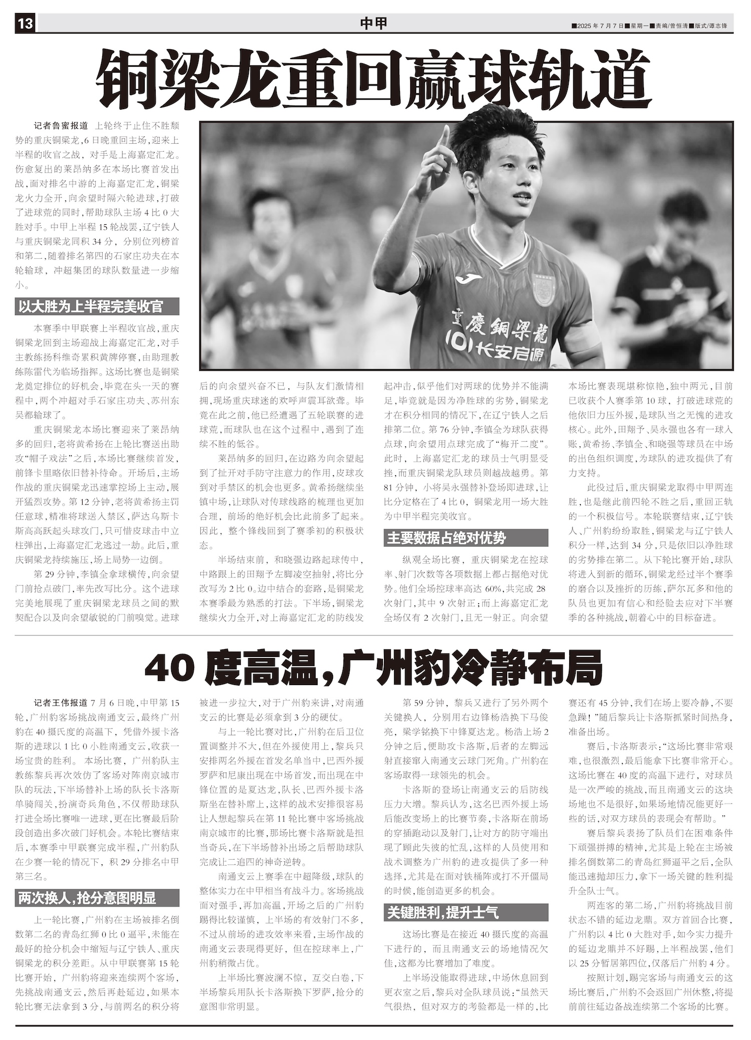 7月6日晚,中甲第15轮,广州豹客场挑战南通支云,最终广州豹在40摄氏度的高温下,凭借外援卡洛斯的进...