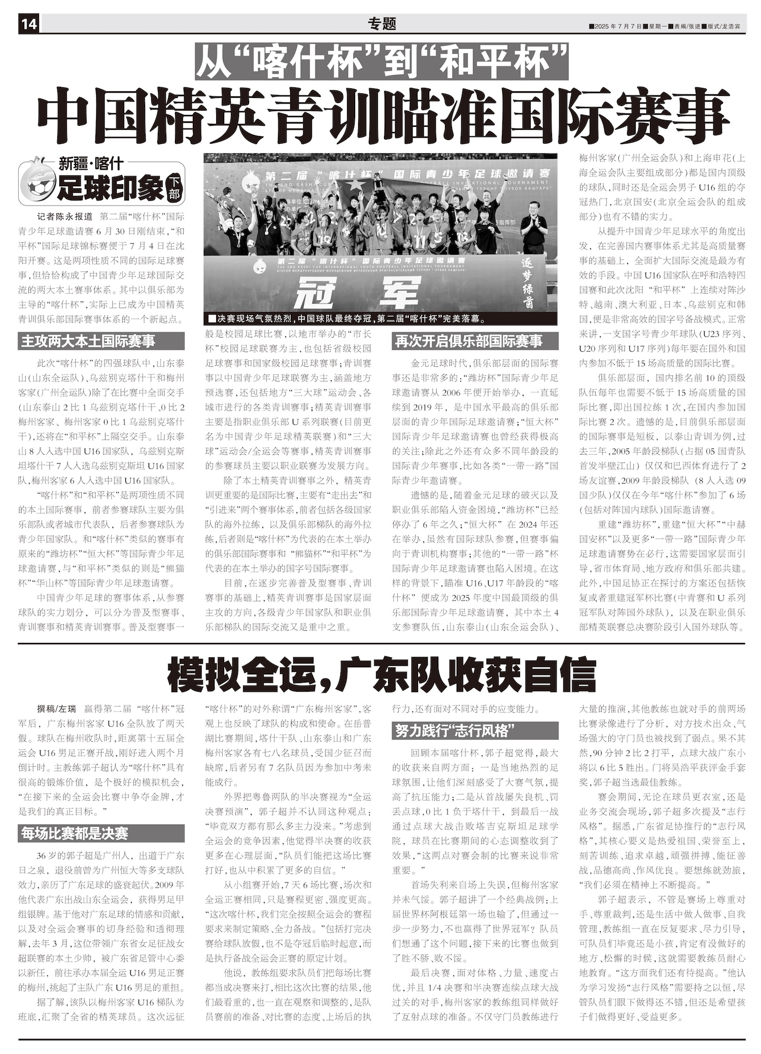 新疆·喀什 足球印象 下部 从“喀什杯”到“和平杯” 中国精英青训瞄准国际赛事