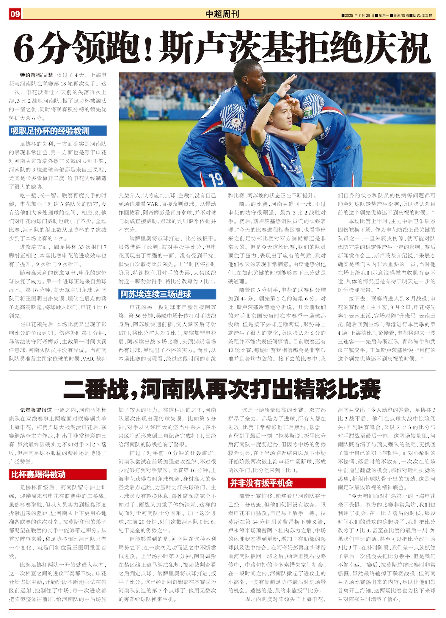 仅过了4天,上海申花与河南队在联赛第18轮再次交手。这一次,申花没有让4天前的失落再次上演,3比2战...