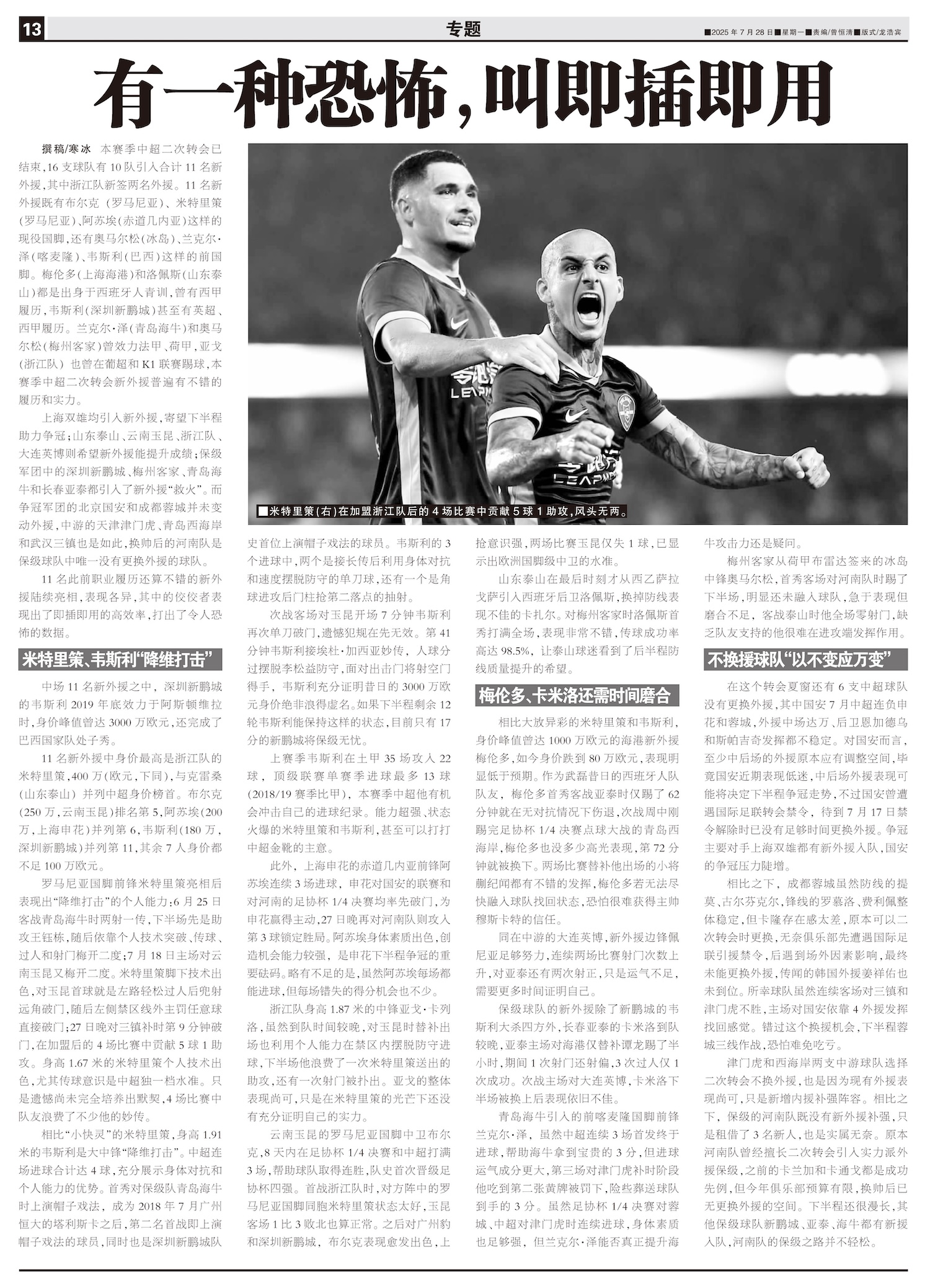 本赛季中超二次转会已结束,16支球队有10队引入合计11名新外援,其中浙江队新签两名外援。11名新外...
