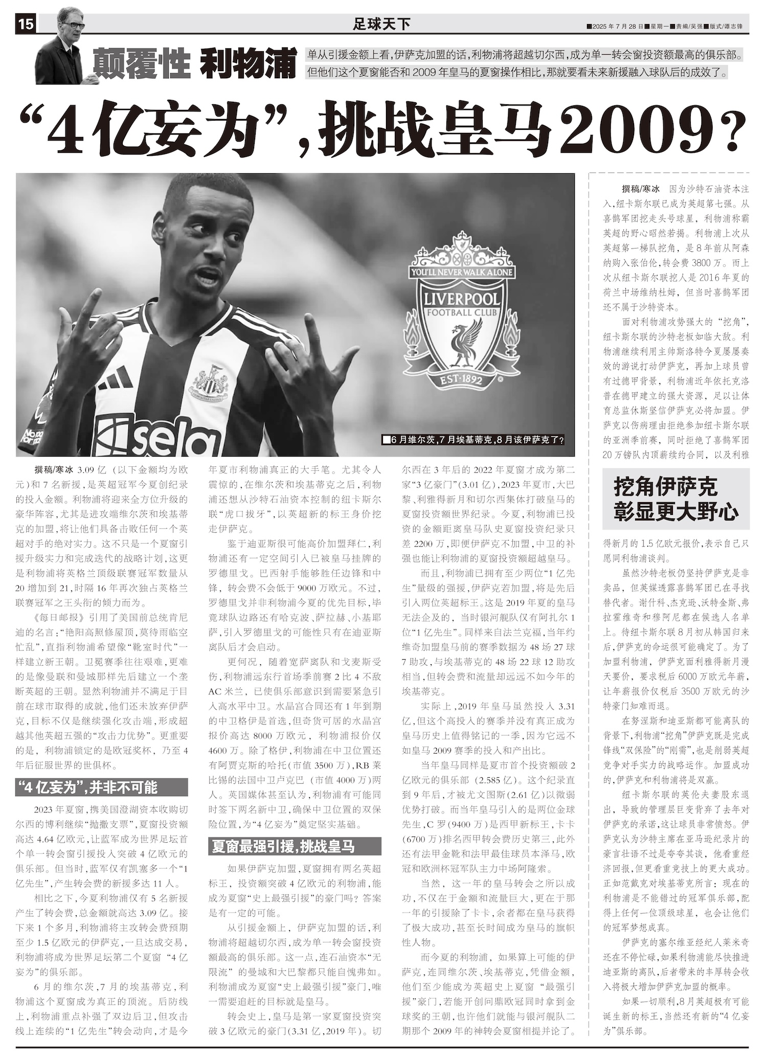 颠覆性 利物浦单从引援金额上看,伊萨克加盟的话,利物浦将超越切尔西,成为单一转会窗投资额最高的俱乐部...