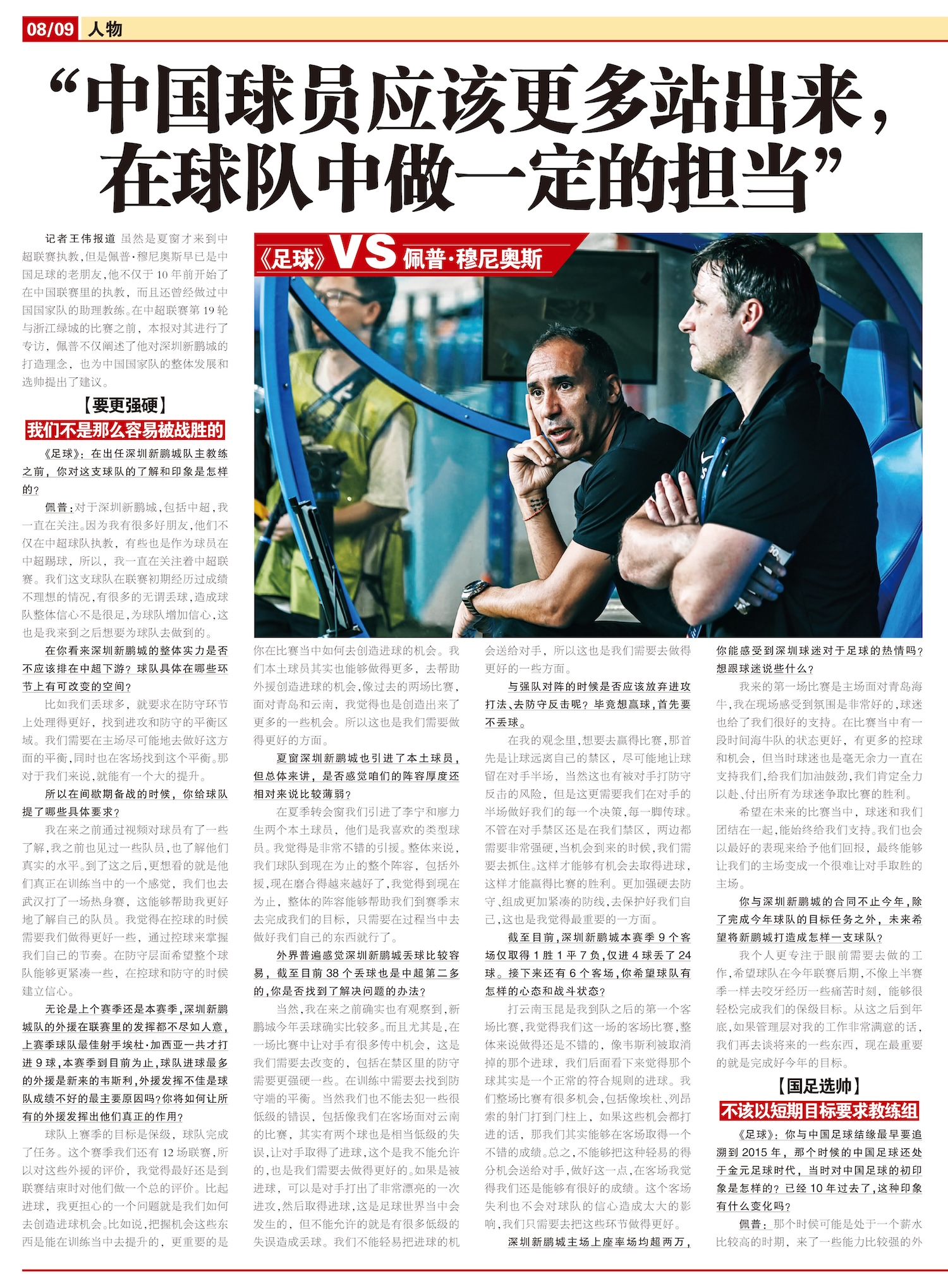 《足球》 VS佩普·穆尼奥斯 “中国球员应该更多站出来,在球队中做一定的担当”