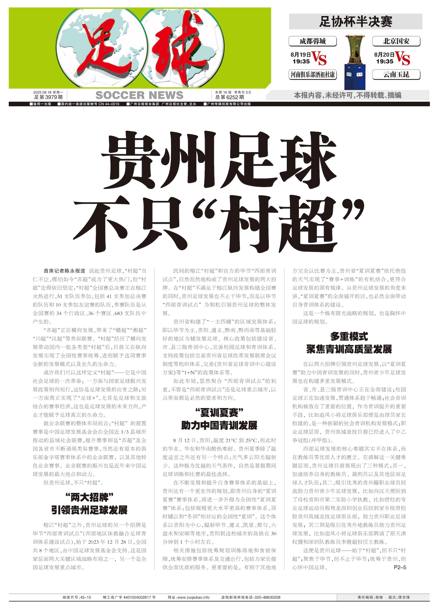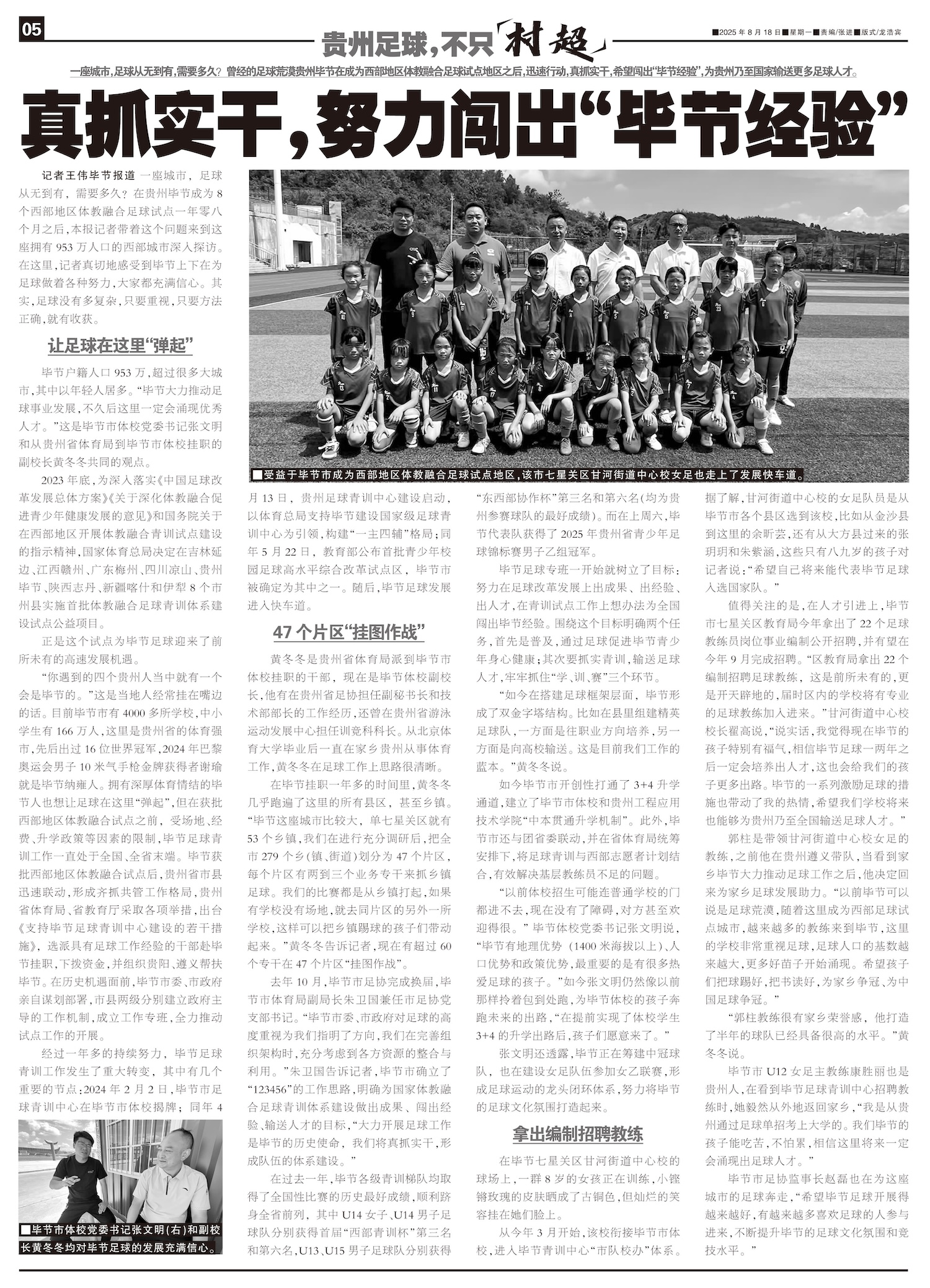 贵州足球,不只“村超”依托榕江“村超”和毕节“西部青训试点”(西部地区体教融合足球青训体系建设试点)...