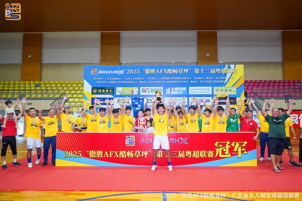 8月24日下午,2025“傲胜AFX酷畅草坪”粤超联赛在三水白坭体育馆落下帷幕,顺德新青年队5比4战胜深圳碧波索格爱尚酒店公寓队,以新军身份夺得粤超联赛桂冠,深圳碧波收获亚军,傳骋恩祈FC队夺得季军。